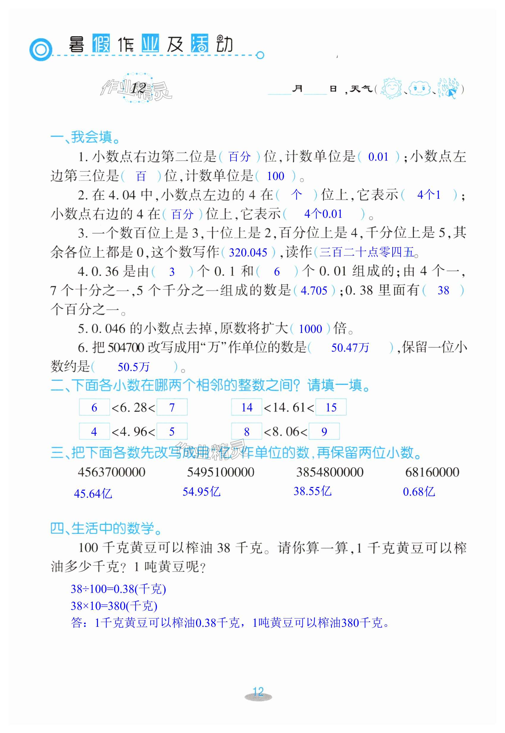 注:目前有些书本章节名称可能整理的还不是很完善,但都是按照顺序排列的,请同学们按照顺序仔细查找。练习册 2024年暑假作业及活动新疆文化出版社四年级数学 答案主要是用来给同学们做完题方便对答案用的,请勿直接抄袭。