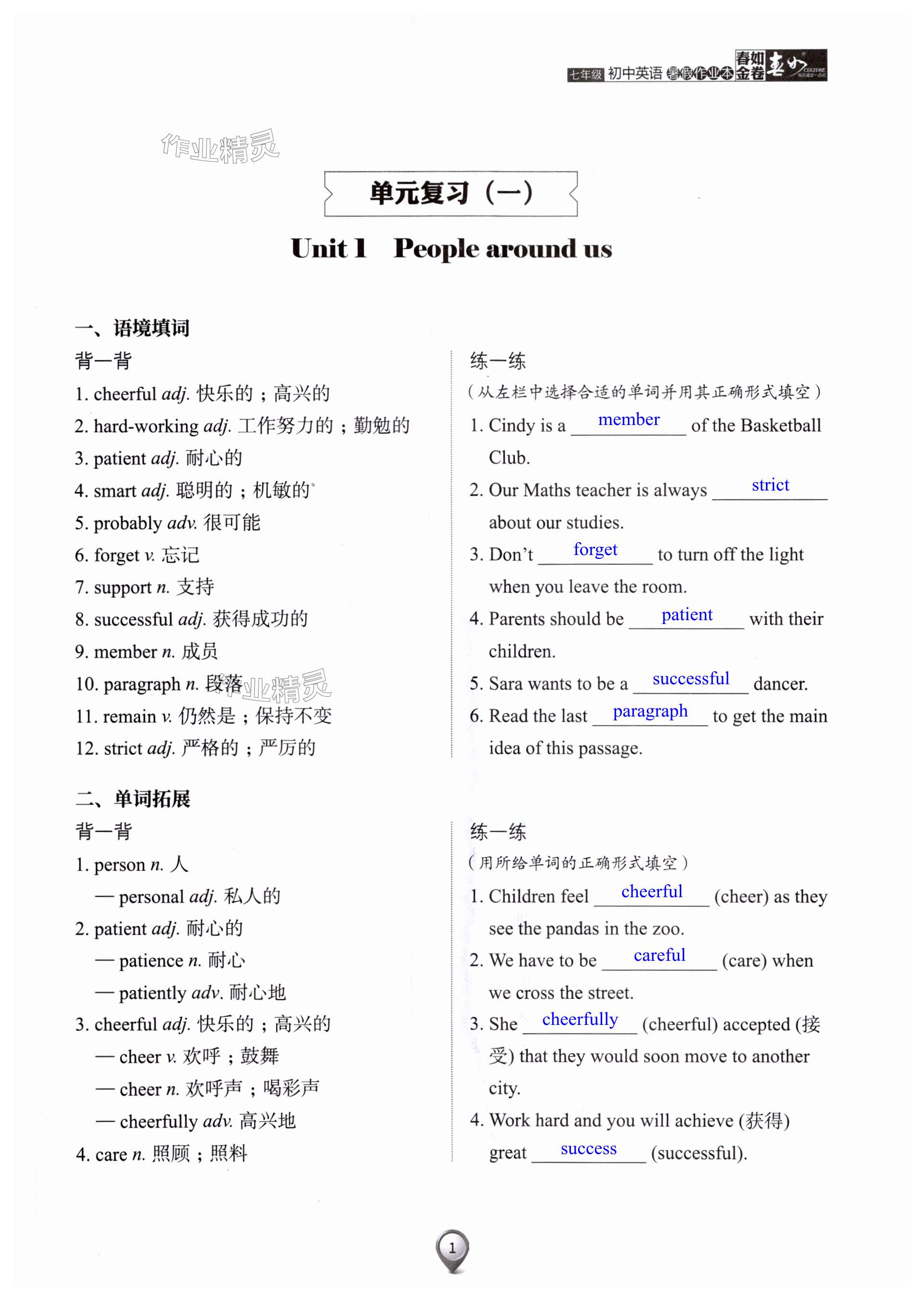注:目前有些书本章节名称可能整理的还不是很完善,但都是按照顺序排列的,请同学们按照顺序仔细查找。练习册 2024年春如金卷初中英语暑假作业本七年级 答案主要是用来给同学们做完题方便对答案用的,请勿直接抄袭。