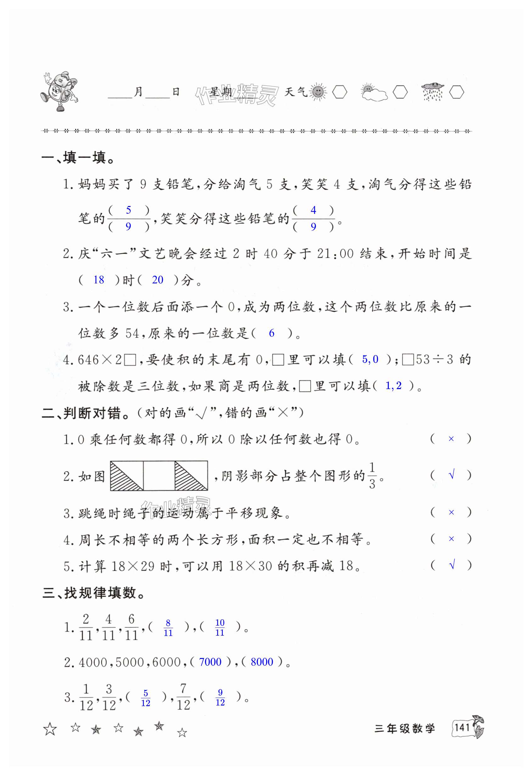 注:目前有些书本章节名称可能整理的还不是很完善,但都是按照顺序排列的,请同学们按照顺序仔细查找。练习册 2024年暑假作业延边教育出版社三年级北师大版合订本河南专版 答案主要是用来给同学们做完题方便对答案用的,请勿直接抄袭。