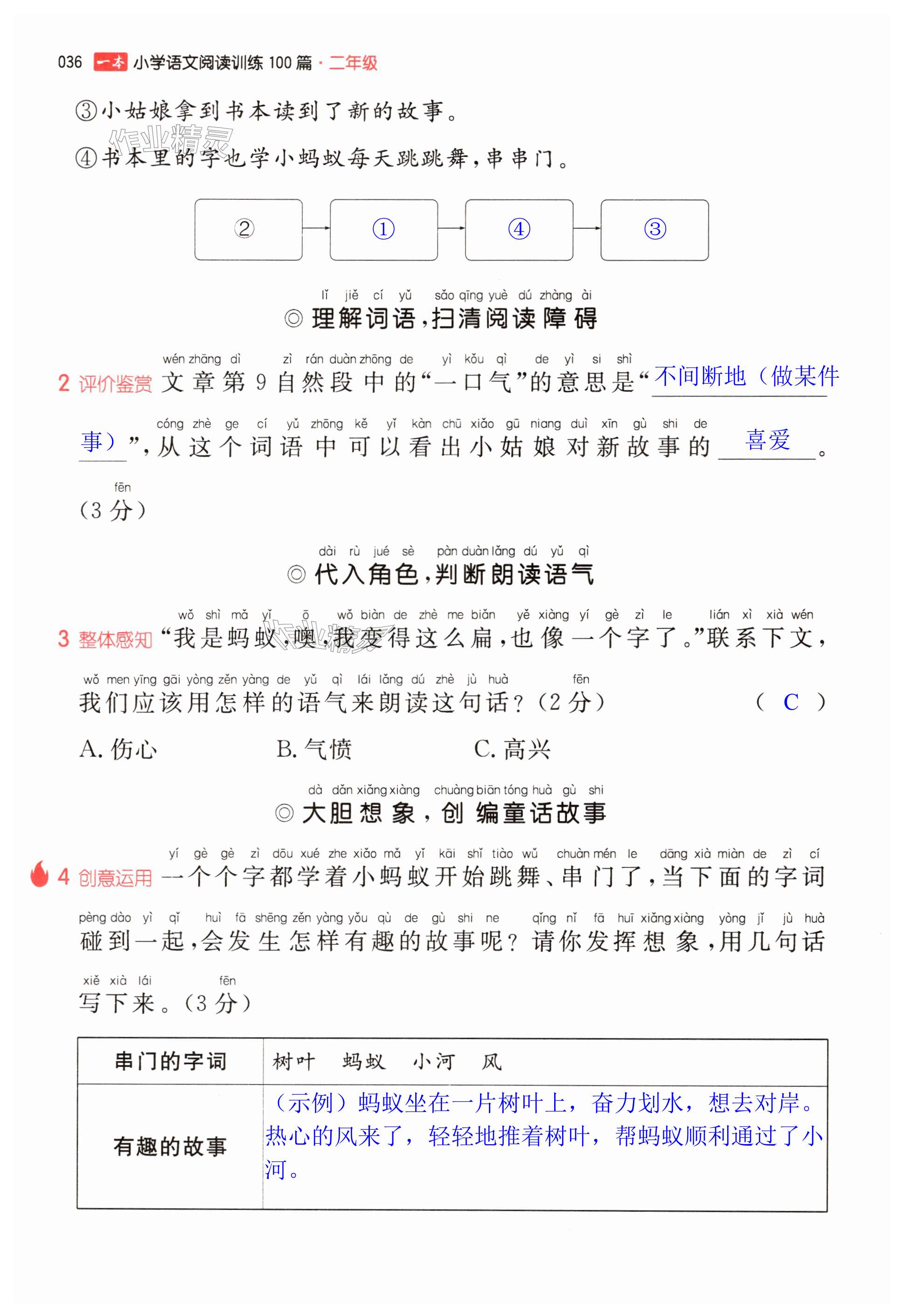 注:目前有些书本章节名称可能整理的还不是很完善,但都是按照顺序排列的,请同学们按照顺序仔细查找。练习册 2024年一本二年级小学语文阅读训练100篇 答案主要是用来给同学们做完题方便对答案用的,请勿直接抄袭。