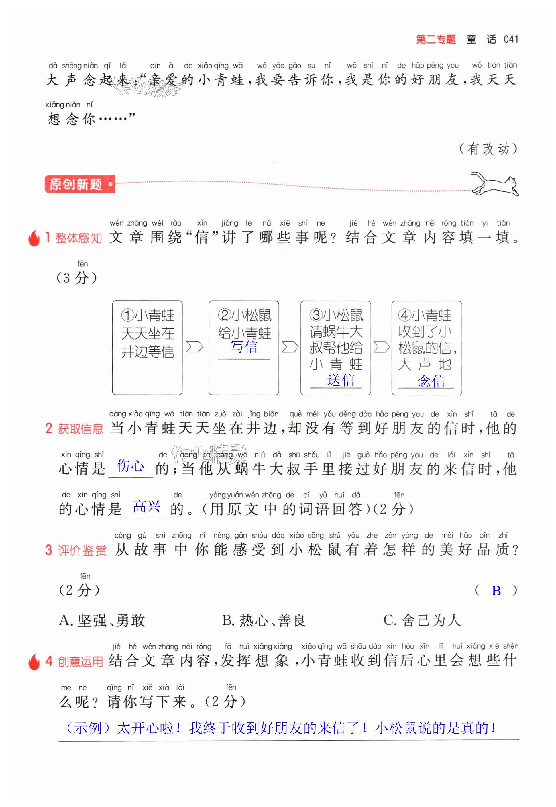 注:目前有些书本章节名称可能整理的还不是很完善,但都是按照顺序排列的,请同学们按照顺序仔细查找。练习册 2024年一本二年级小学语文阅读训练100篇 答案主要是用来给同学们做完题方便对答案用的,请勿直接抄袭。