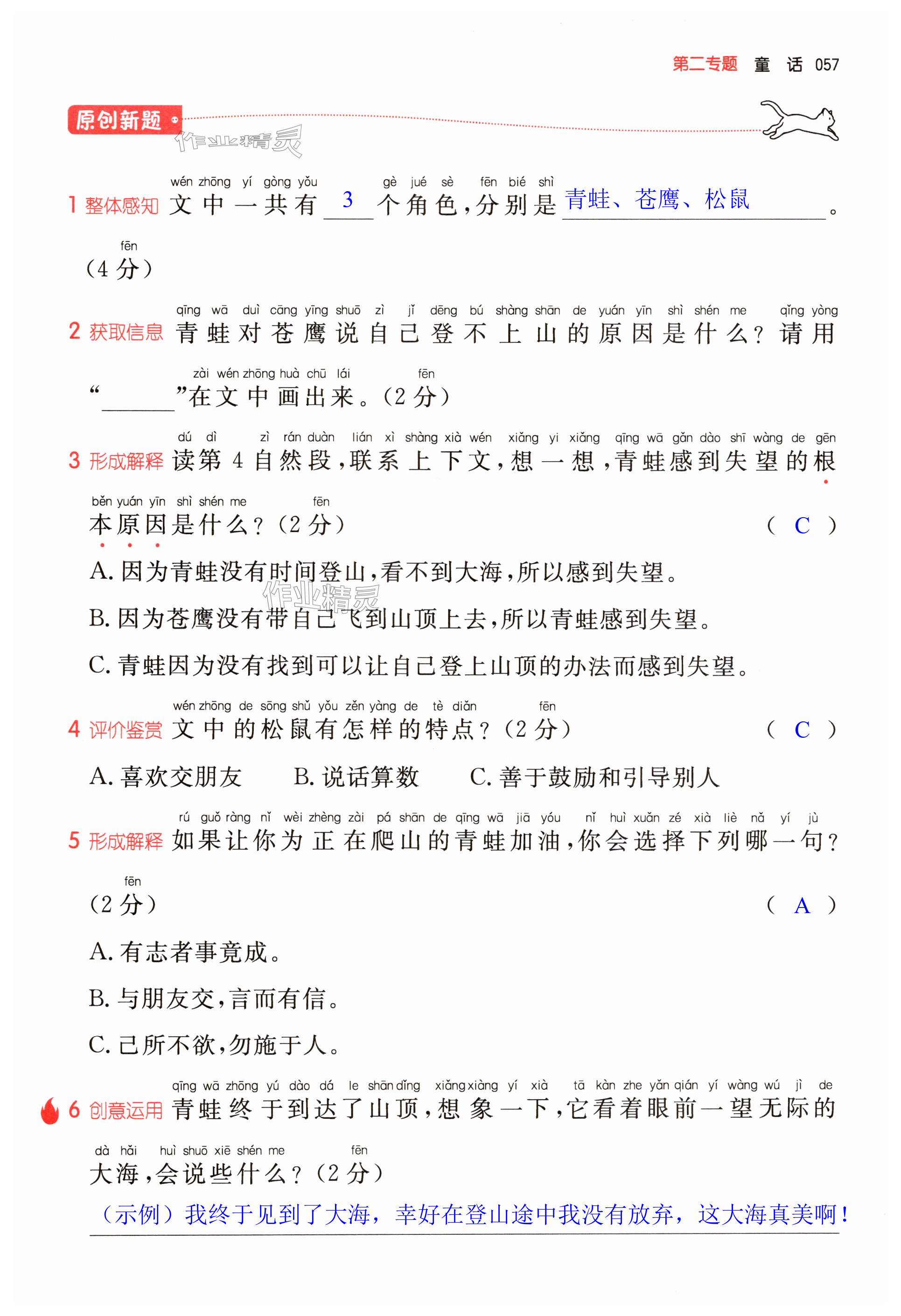 注:目前有些书本章节名称可能整理的还不是很完善,但都是按照顺序排列的,请同学们按照顺序仔细查找。练习册 2024年一本二年级小学语文阅读训练100篇 答案主要是用来给同学们做完题方便对答案用的,请勿直接抄袭。