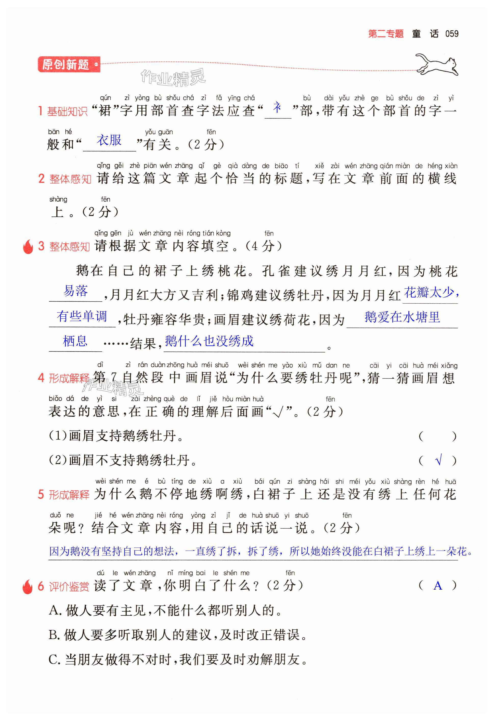 注:目前有些书本章节名称可能整理的还不是很完善,但都是按照顺序排列的,请同学们按照顺序仔细查找。练习册 2024年一本二年级小学语文阅读训练100篇 答案主要是用来给同学们做完题方便对答案用的,请勿直接抄袭。