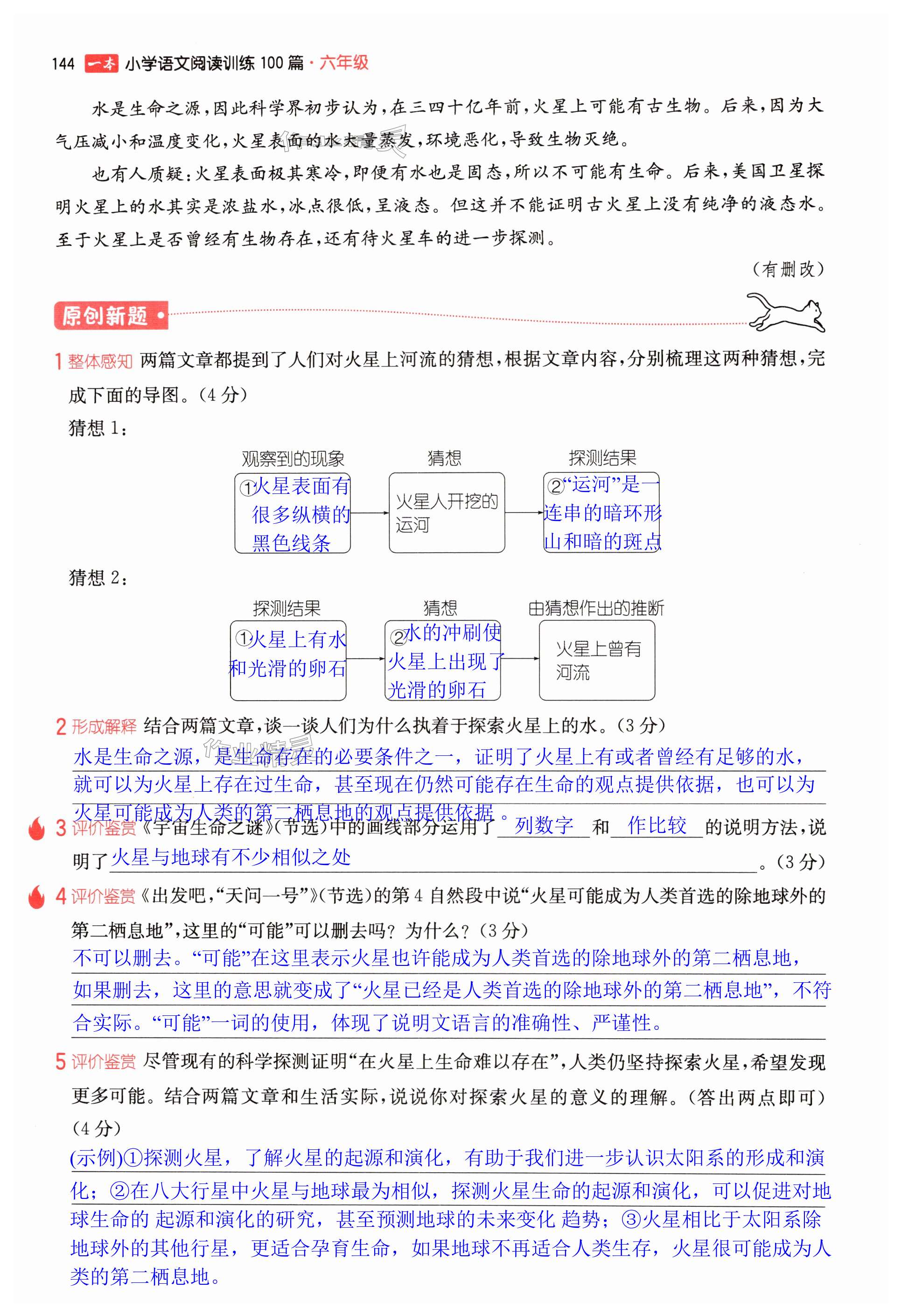 《2024年一本小学语文阅读训练100篇六年级阅读题》