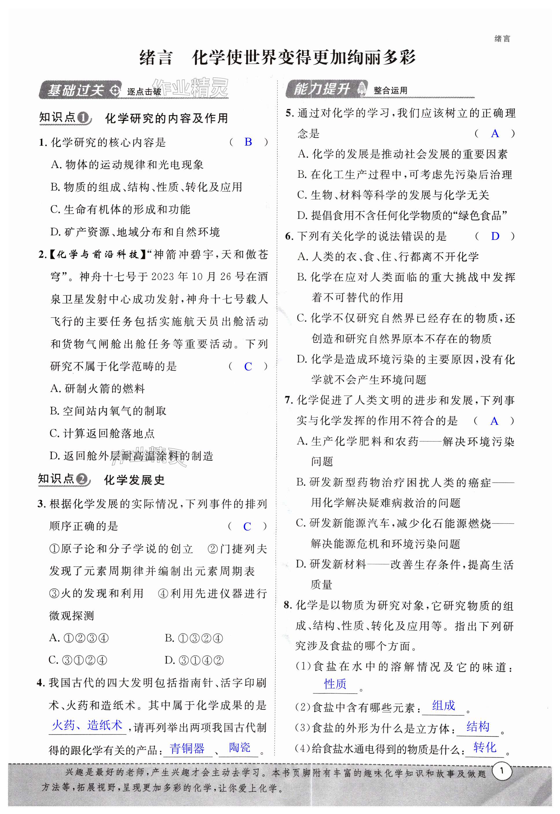 注:目前有些书本章节名称可能整理的还不是很完善,但都是按照顺序排列的,请同学们按照顺序仔细查找。练习册 2024年名师测控九年级化学上册人教版江西专版 答案主要是用来给同学们做完题方便对答案用的,请勿直接抄袭。