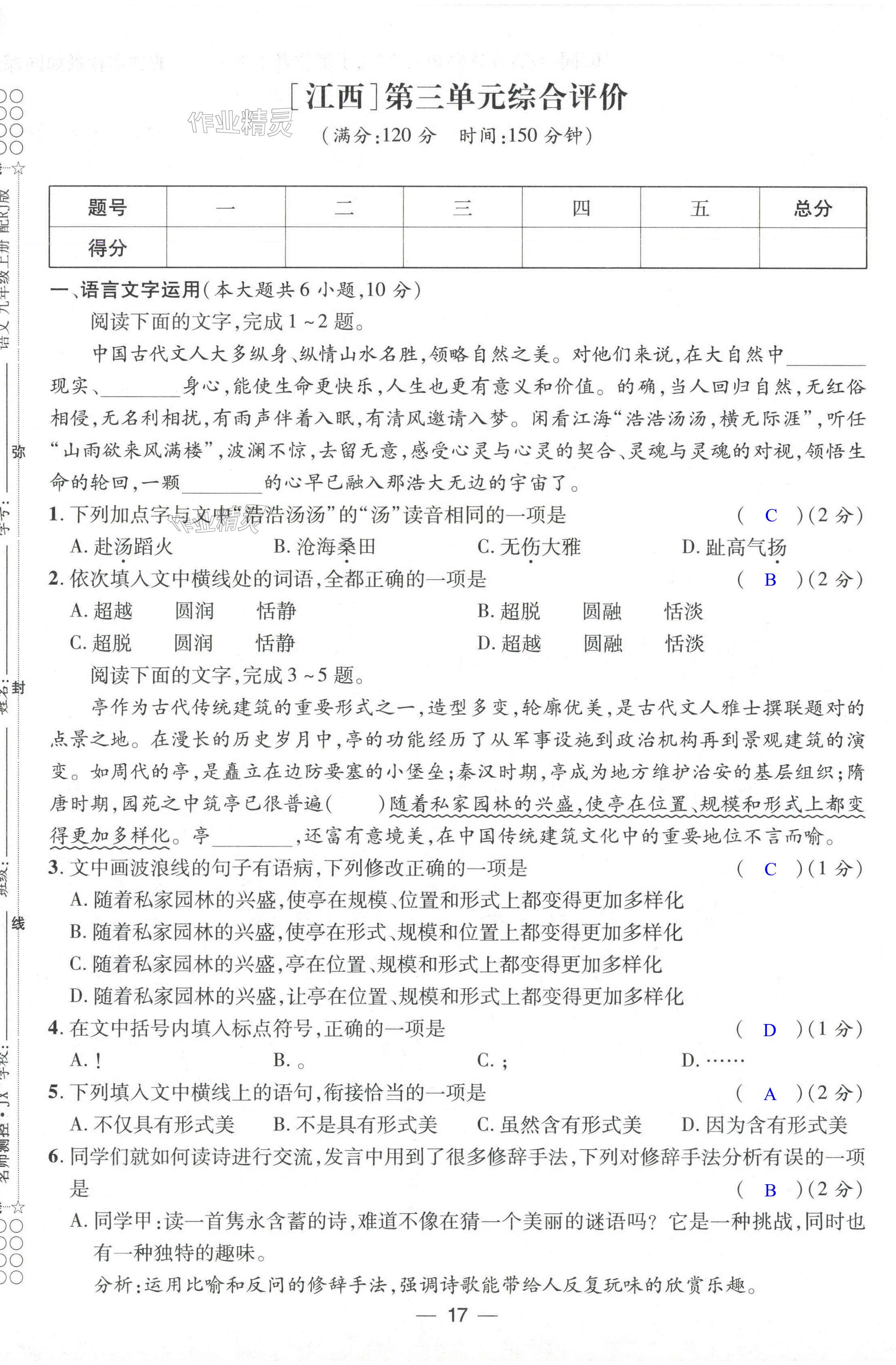 注:目前有些书本章节名称可能整理的还不是很完善,但都是按照顺序排列的,请同学们按照顺序仔细查找。练习册 2024年名师测控九年级语文上册人教版江西专版 答案主要是用来给同学们做完题方便对答案用的,请勿直接抄袭。