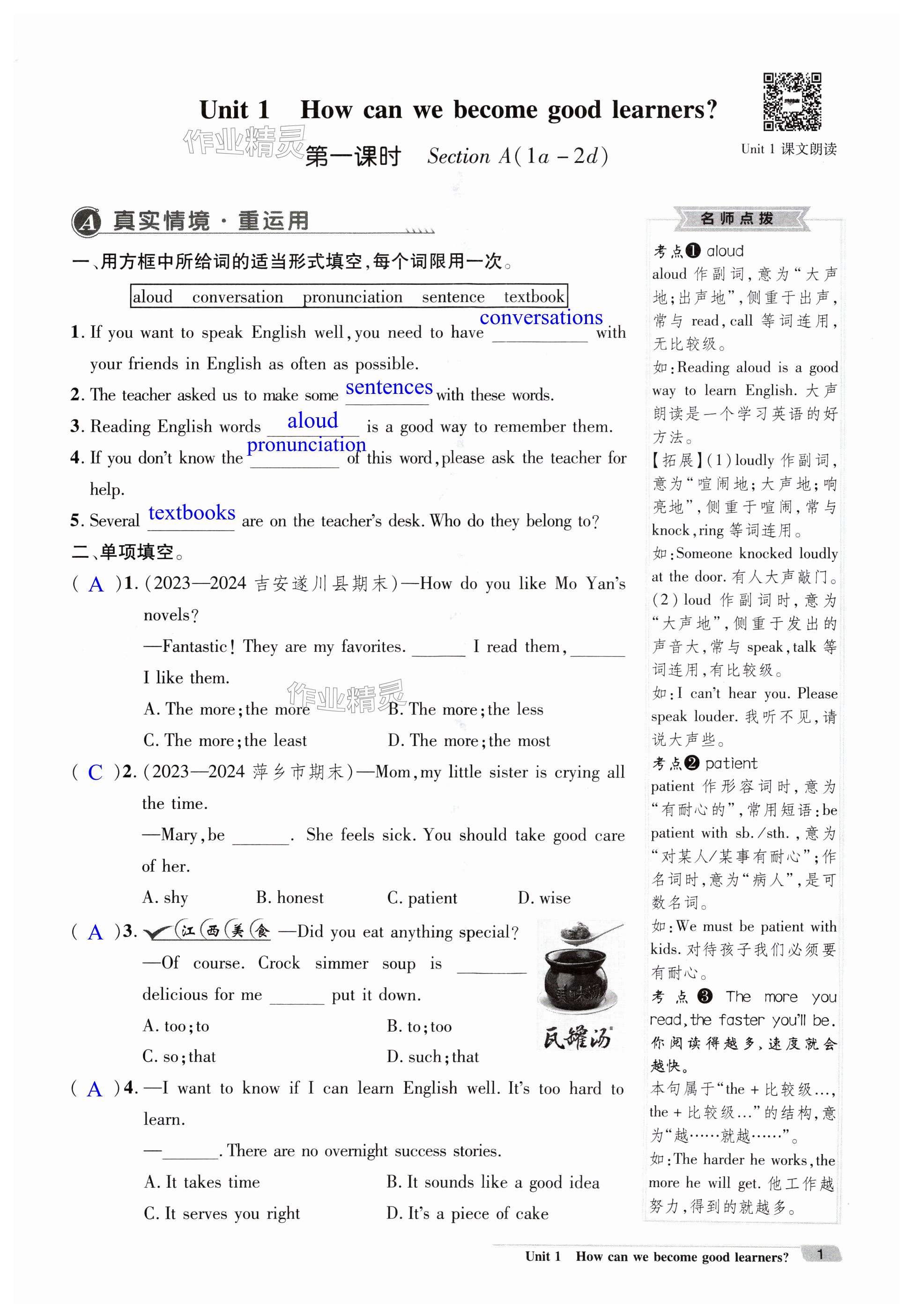 注:目前有些书本章节名称可能整理的还不是很完善,但都是按照顺序排列的,请同学们按照顺序仔细查找。练习册2024年名师测控九年级英语上册人教版江西专版答案主要是用来给同学们做完题方便对答案用的,请勿直接抄袭。