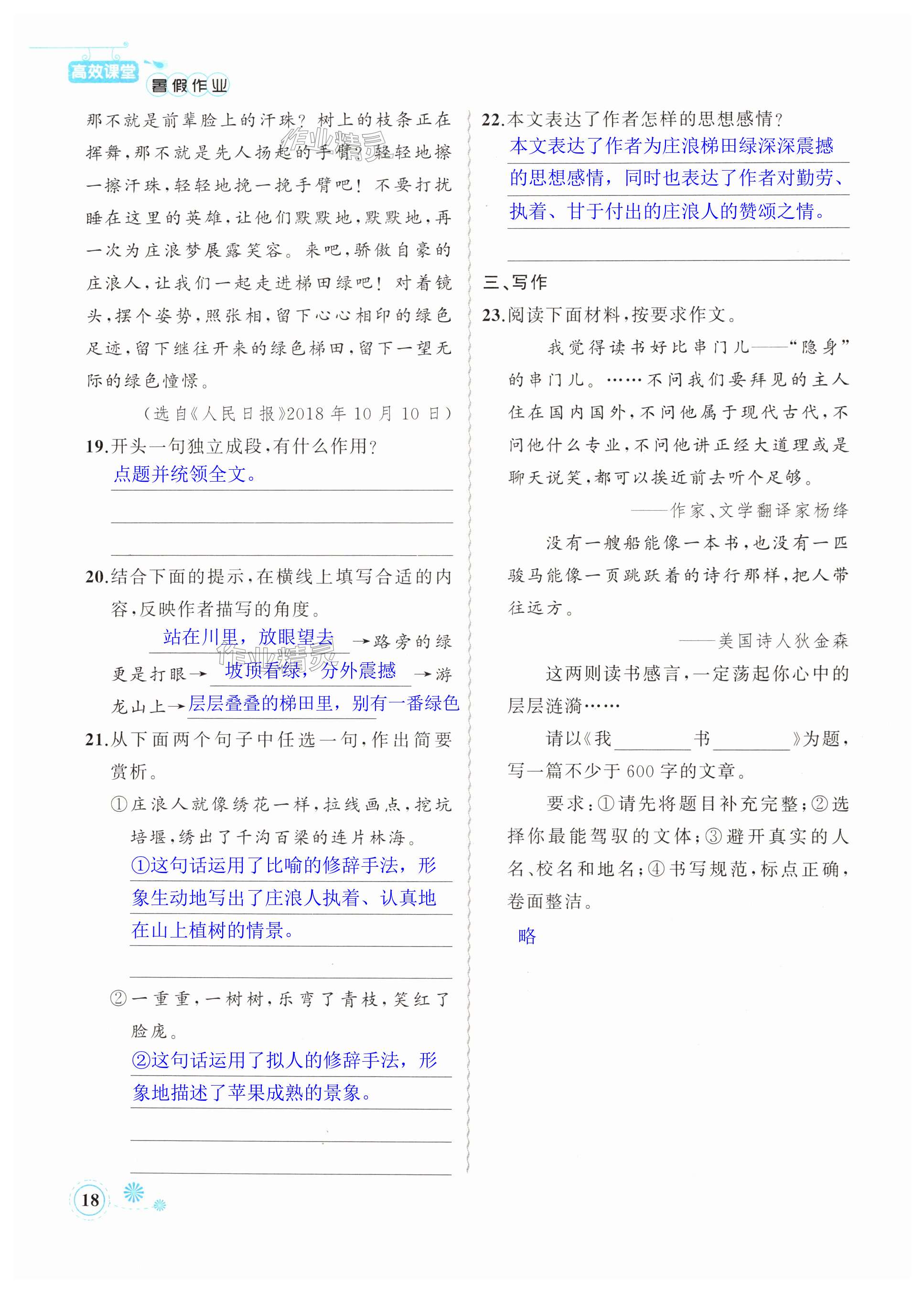 注:目前有些书本章节名称可能整理的还不是很完善,但都是按照顺序排列的,请同学们按照顺序仔细查找。练习册 2024年暑假作业八年级语文新疆青少年出版社 答案主要是用来给同学们做完题方便对答案用的,请勿直接抄袭。