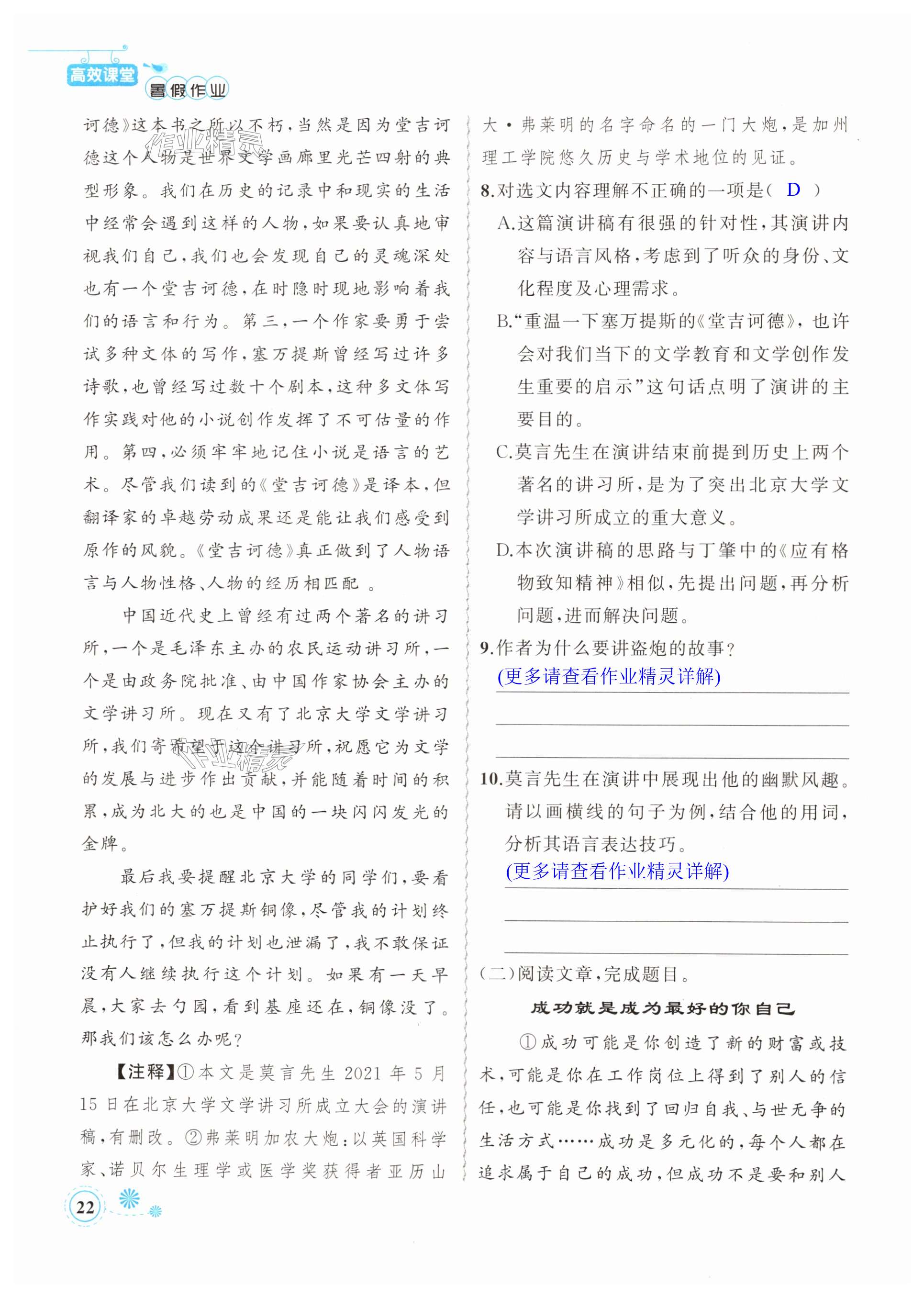 注:目前有些书本章节名称可能整理的还不是很完善,但都是按照顺序排列的,请同学们按照顺序仔细查找。练习册 2024年暑假作业八年级语文新疆青少年出版社 答案主要是用来给同学们做完题方便对答案用的,请勿直接抄袭。