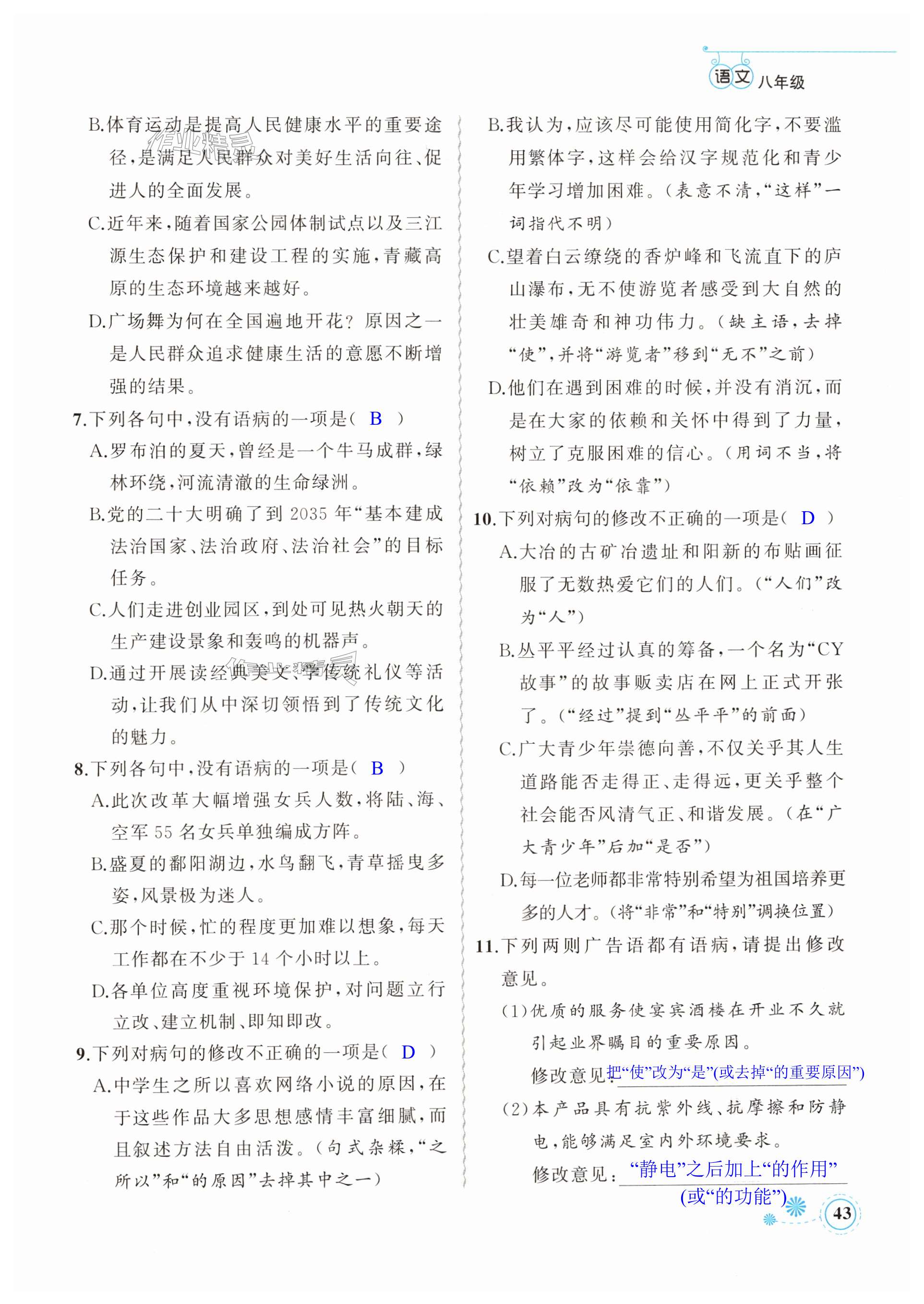 注:目前有些书本章节名称可能整理的还不是很完善,但都是按照顺序排列的,请同学们按照顺序仔细查找。练习册 2024年暑假作业八年级语文新疆青少年出版社 答案主要是用来给同学们做完题方便对答案用的,请勿直接抄袭。