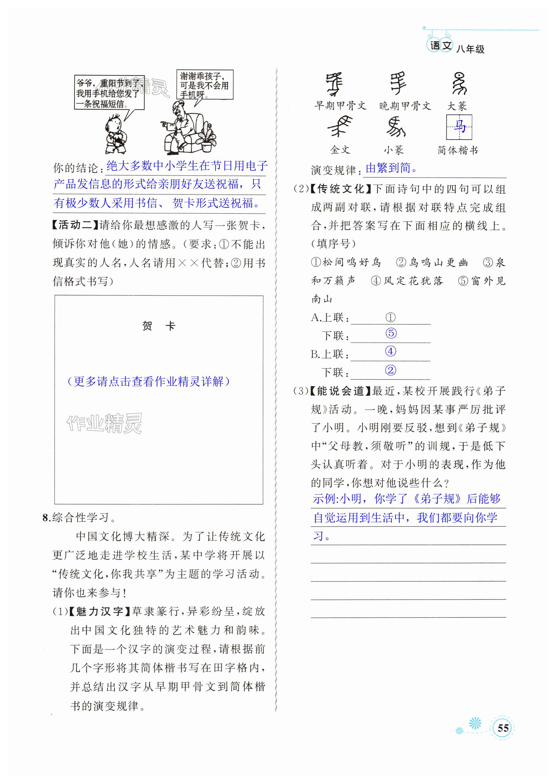 注:目前有些书本章节名称可能整理的还不是很完善,但都是按照顺序排列的,请同学们按照顺序仔细查找。练习册 2024年暑假作业八年级语文新疆青少年出版社 答案主要是用来给同学们做完题方便对答案用的,请勿直接抄袭。
