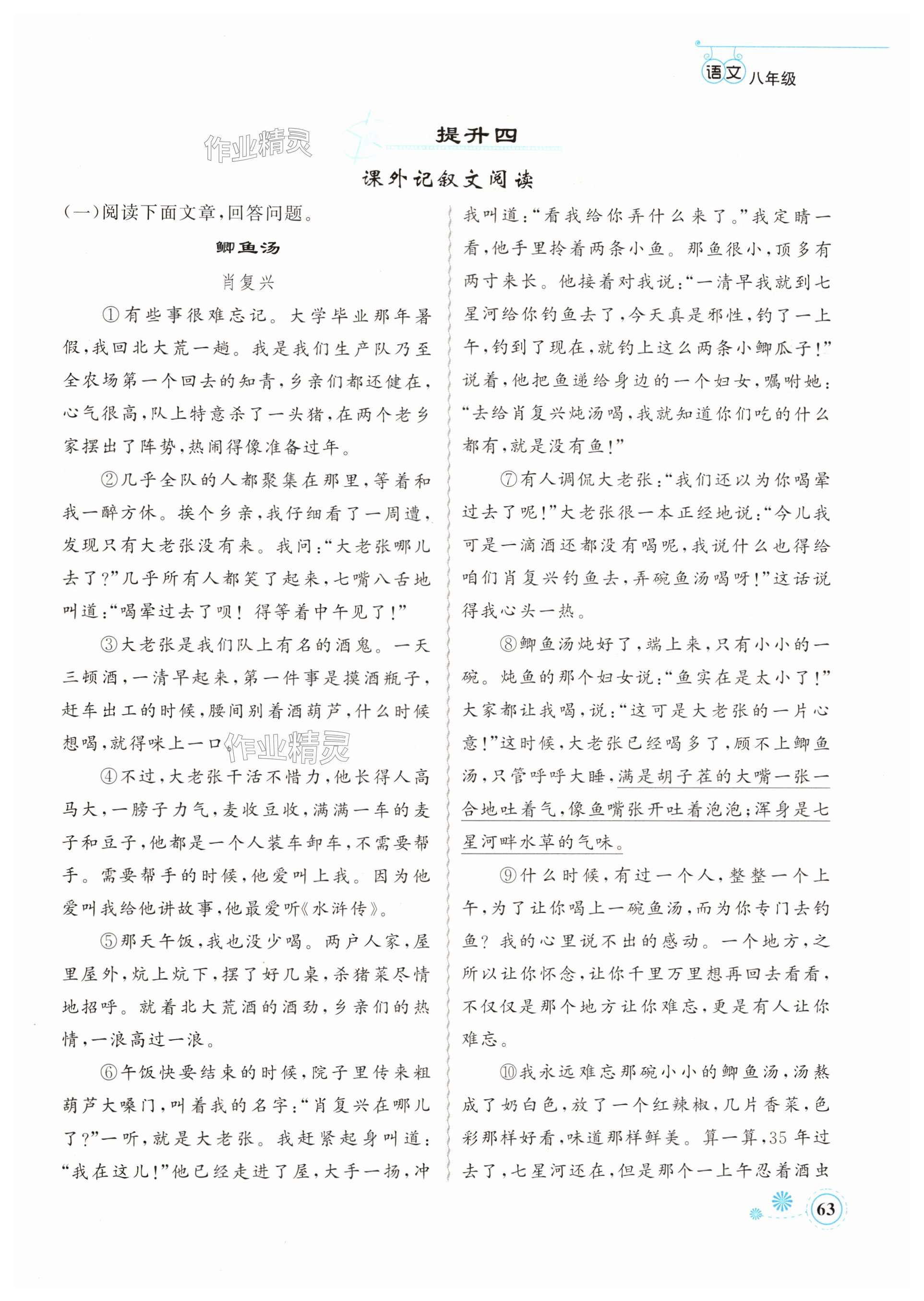 注:目前有些书本章节名称可能整理的还不是很完善,但都是按照顺序排列的,请同学们按照顺序仔细查找。练习册 2024年暑假作业八年级语文新疆青少年出版社 答案主要是用来给同学们做完题方便对答案用的,请勿直接抄袭。