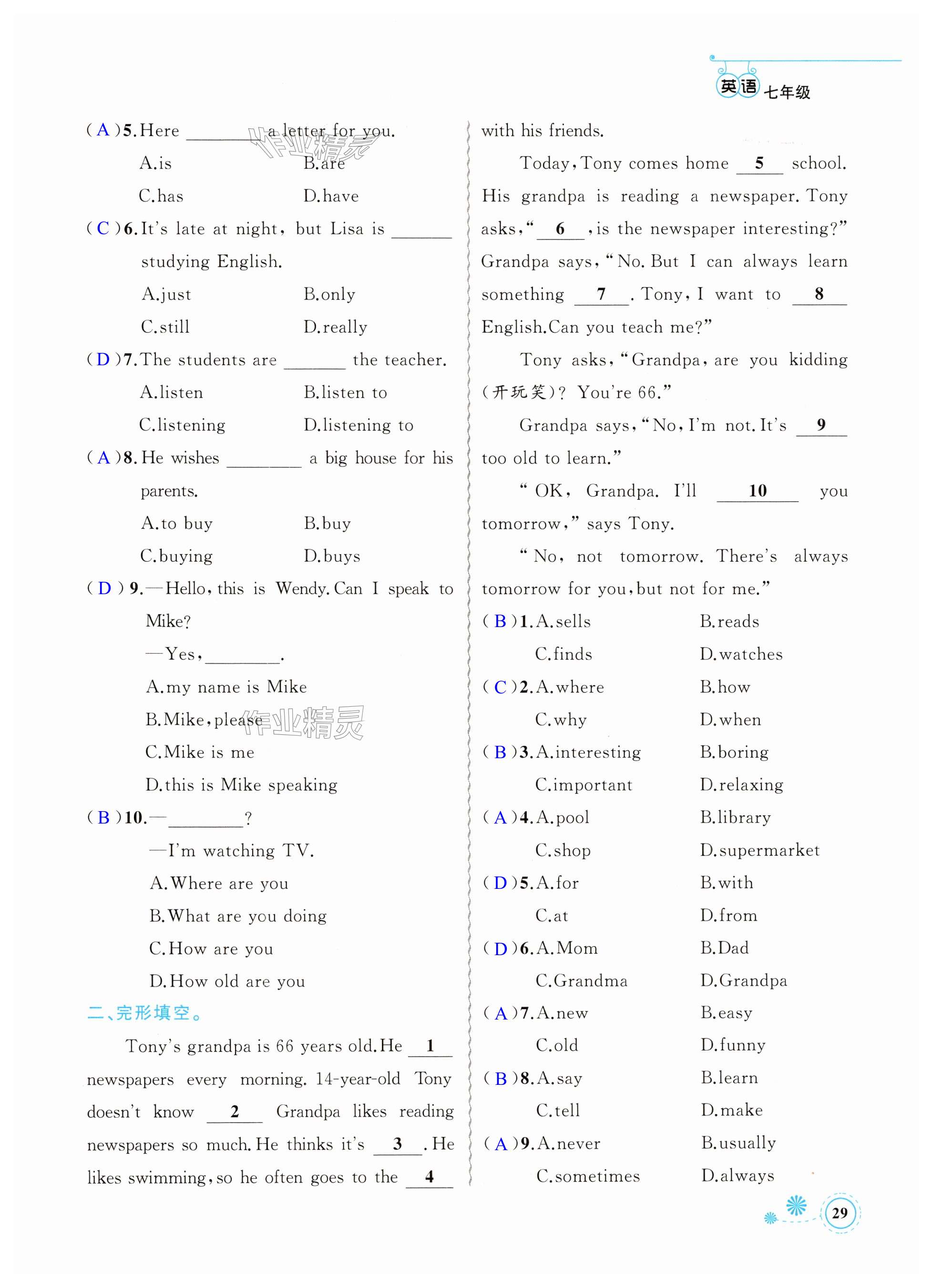 注:目前有些书本章节名称可能整理的还不是很完善,但都是按照顺序排列的,请同学们按照顺序仔细查找。练习册 2024年暑假作业七年级英语新疆青少年出版社 答案主要是用来给同学们做完题方便对答案用的,请勿直接抄袭。