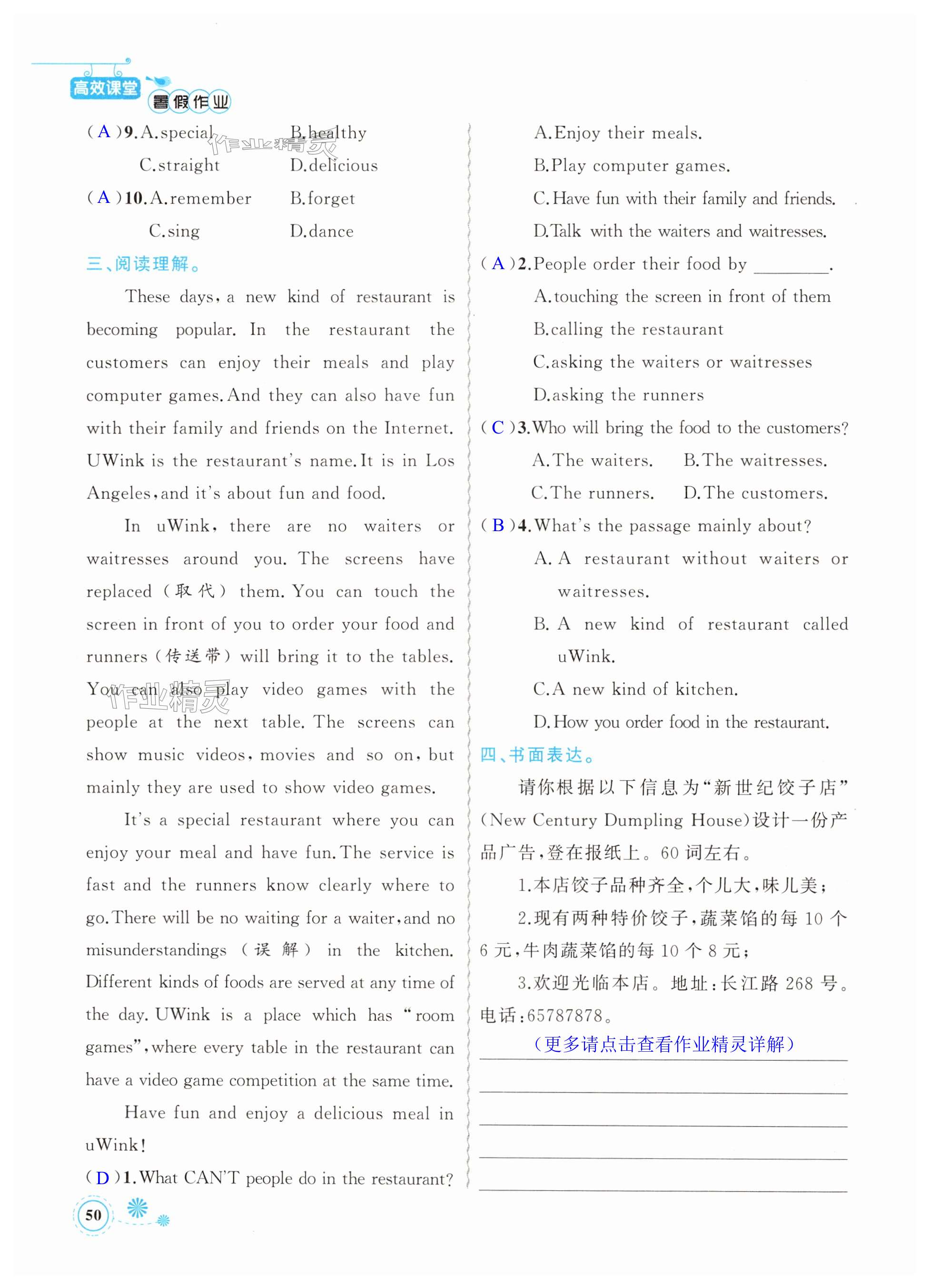 注:目前有些书本章节名称可能整理的还不是很完善,但都是按照顺序排列的,请同学们按照顺序仔细查找。练习册 2024年暑假作业七年级英语新疆青少年出版社 答案主要是用来给同学们做完题方便对答案用的,请勿直接抄袭。