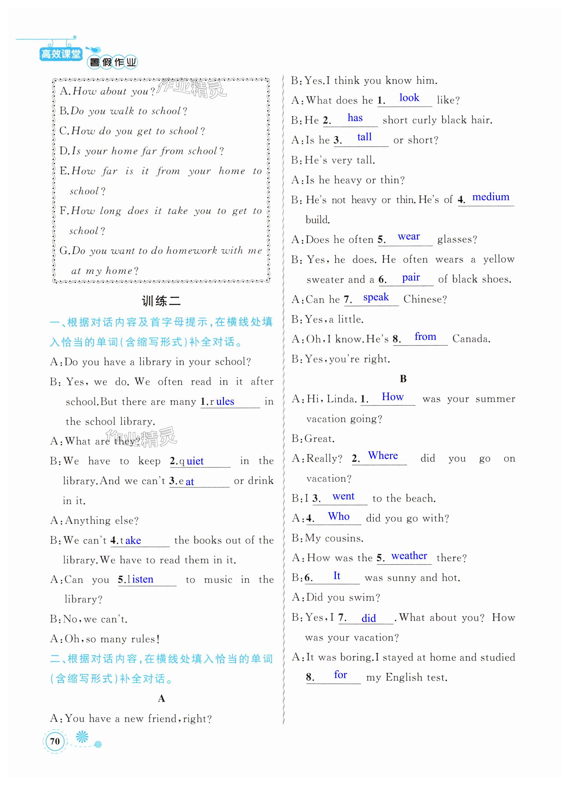 注:目前有些书本章节名称可能整理的还不是很完善,但都是按照顺序排列的,请同学们按照顺序仔细查找。练习册 2024年暑假作业七年级英语新疆青少年出版社 答案主要是用来给同学们做完题方便对答案用的,请勿直接抄袭。