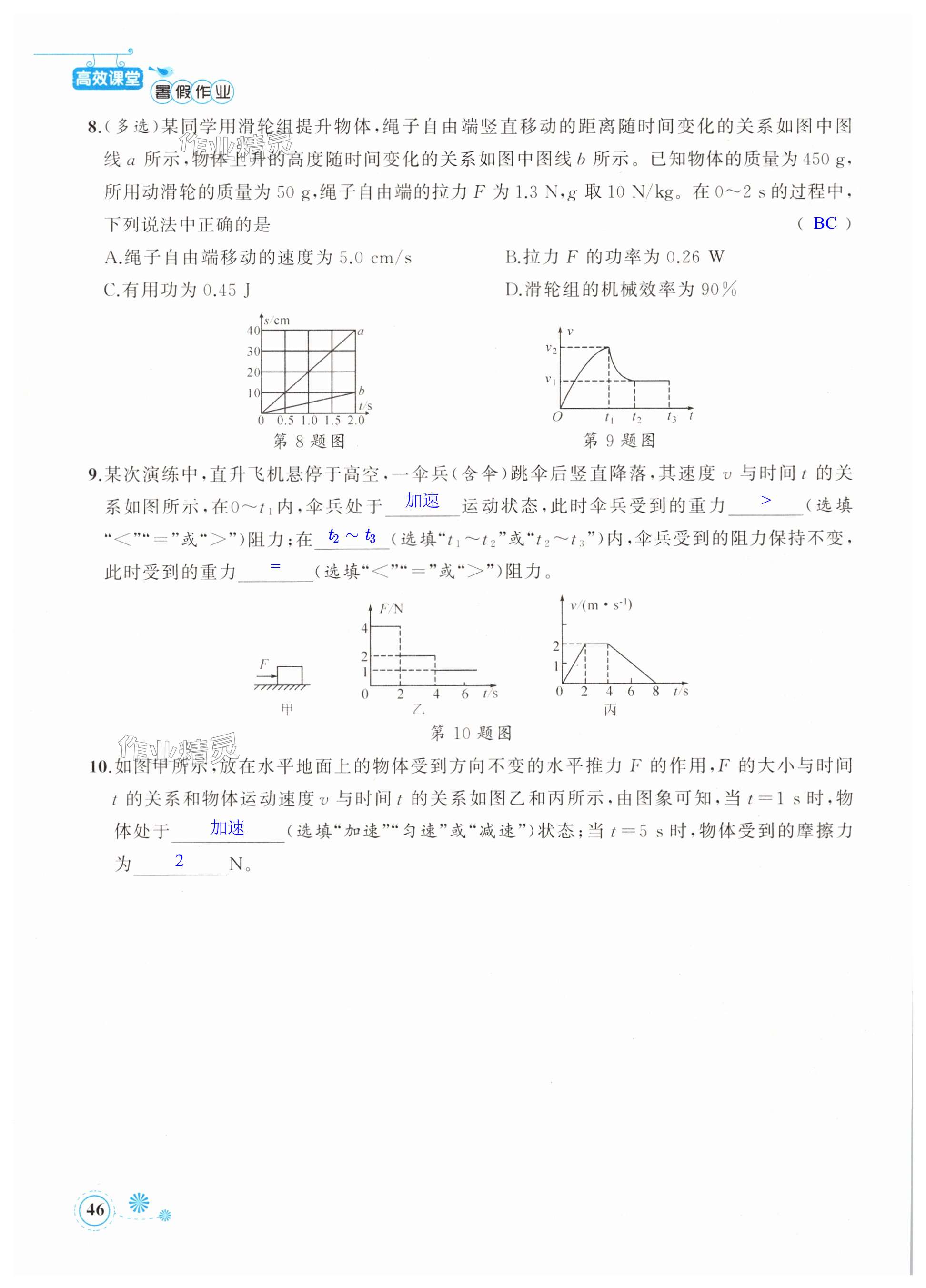 2024年暑假作业八年级物理新疆青少年出版社