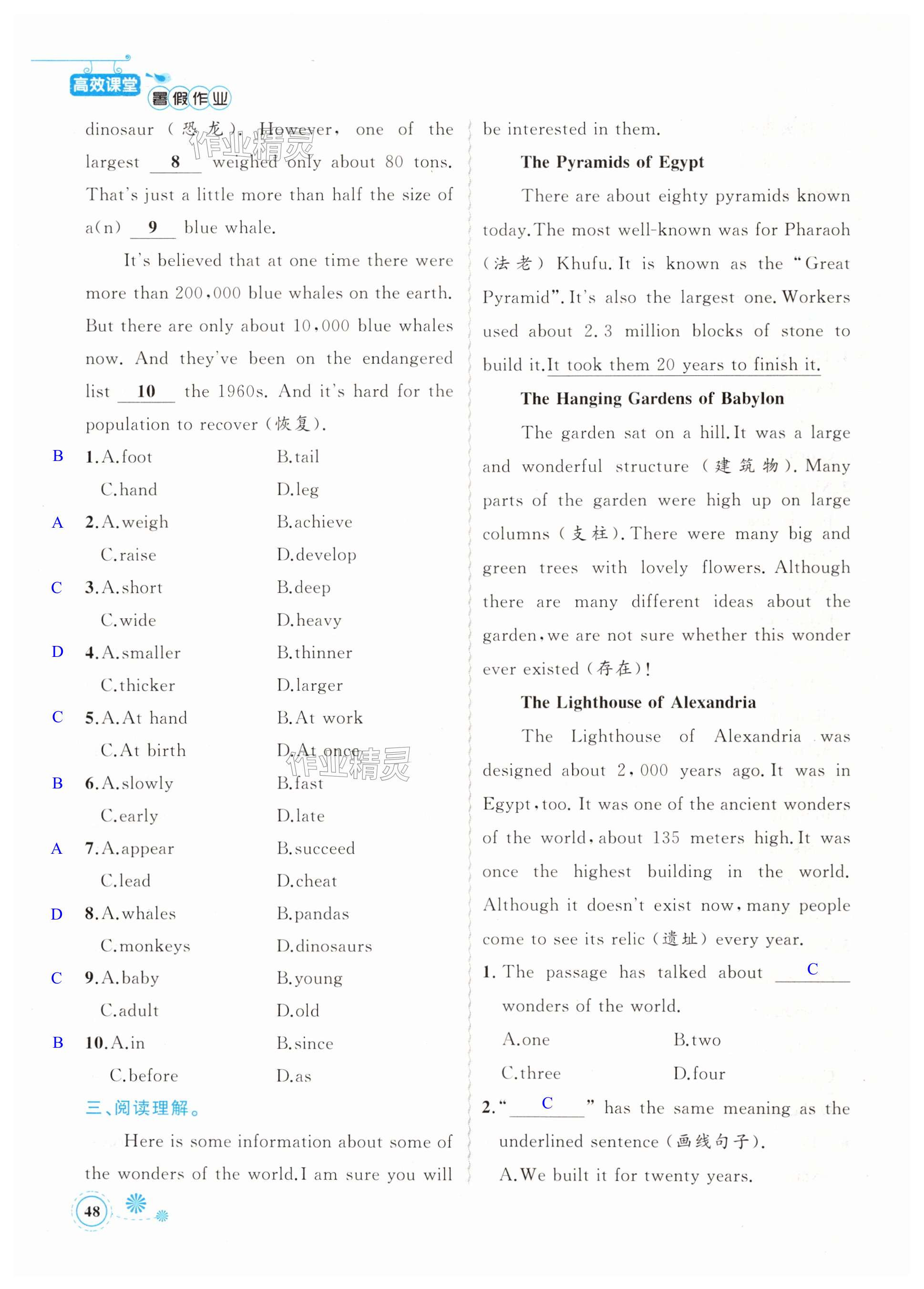 注:目前有些书本章节名称可能整理的还不是很完善,但都是按照顺序排列的,请同学们按照顺序仔细查找。练习册 2024年暑假作业八年级英语新疆青少年出版社 答案主要是用来给同学们做完题方便对答案用的,请勿直接抄袭。