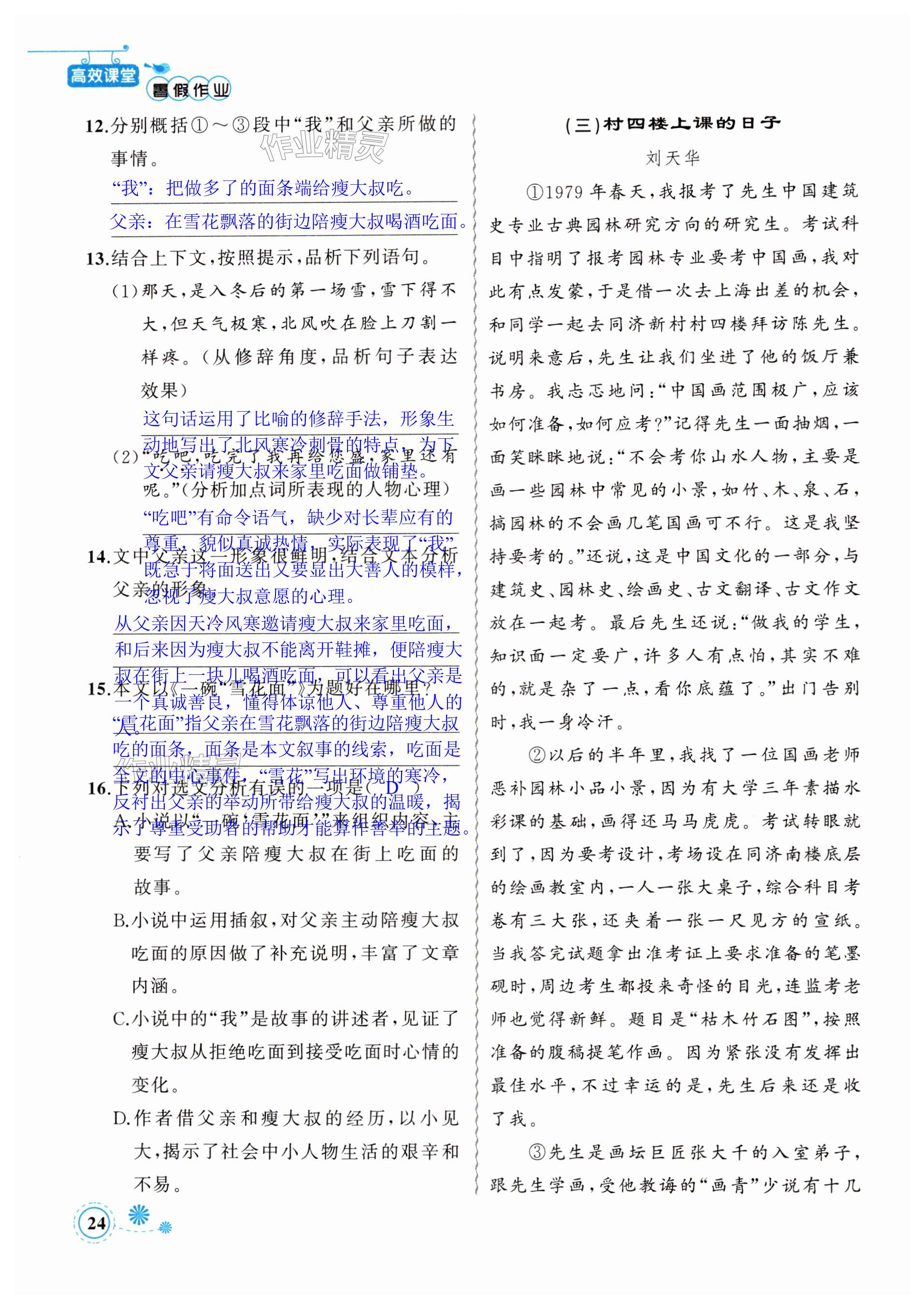 注:目前有些书本章节名称可能整理的还不是很完善,但都是按照顺序排列的,请同学们按照顺序仔细查找。练习册 2024年暑假作业七年级语文新疆青少年出版社 答案主要是用来给同学们做完题方便对答案用的,请勿直接抄袭。