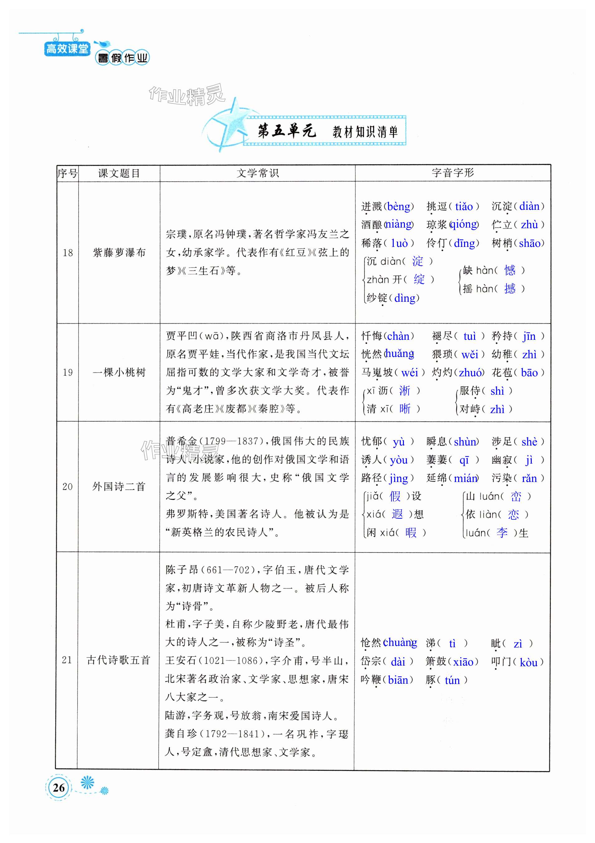 注:目前有些书本章节名称可能整理的还不是很完善,但都是按照顺序排列的,请同学们按照顺序仔细查找。练习册 2024年暑假作业七年级语文新疆青少年出版社 答案主要是用来给同学们做完题方便对答案用的,请勿直接抄袭。