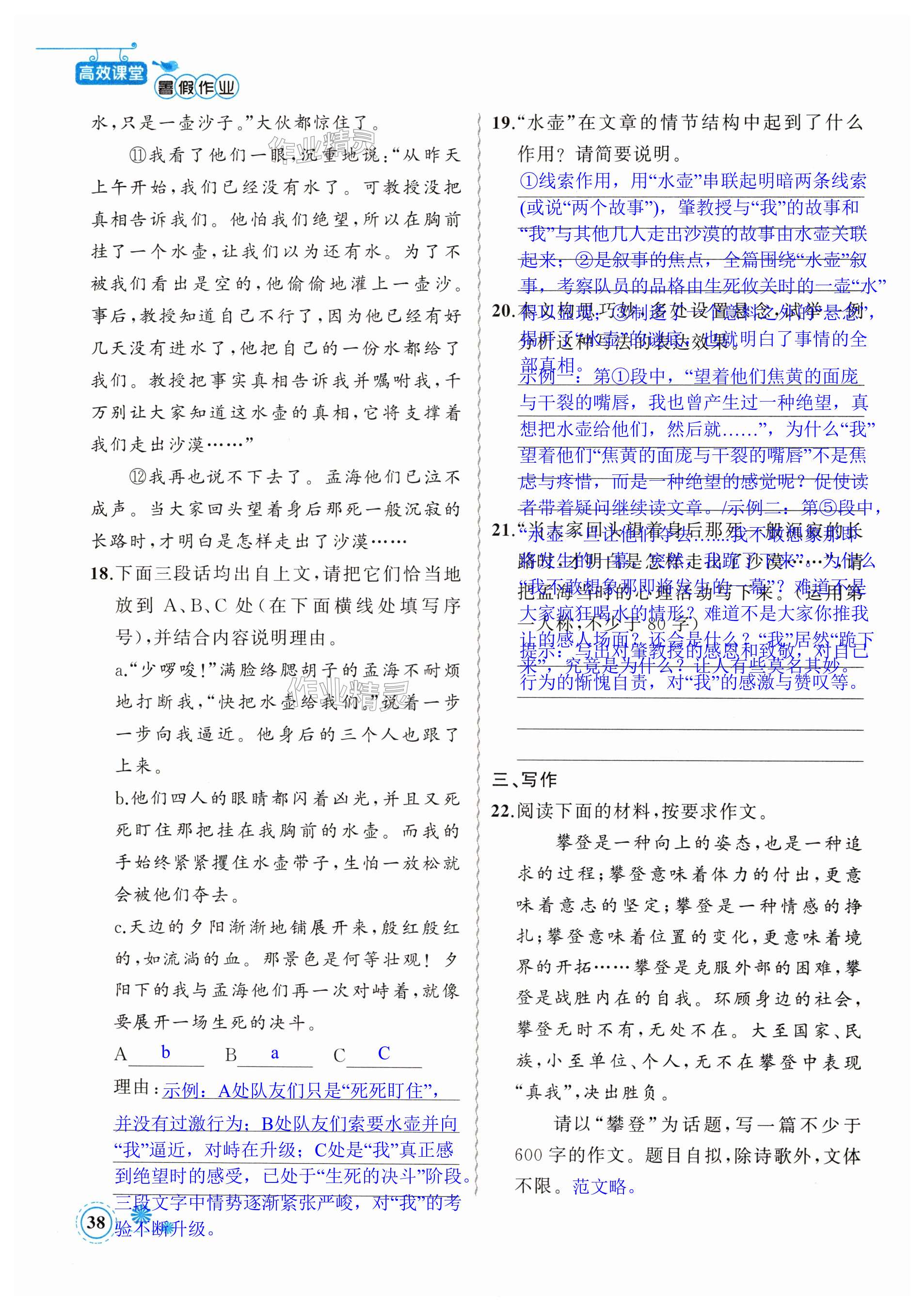 注:目前有些书本章节名称可能整理的还不是很完善,但都是按照顺序排列的,请同学们按照顺序仔细查找。练习册 2024年暑假作业七年级语文新疆青少年出版社 答案主要是用来给同学们做完题方便对答案用的,请勿直接抄袭。
