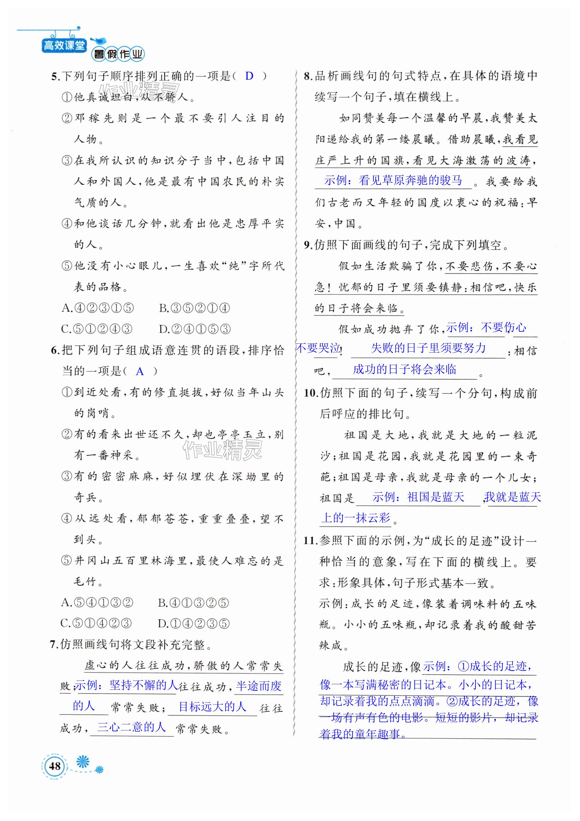 注:目前有些书本章节名称可能整理的还不是很完善,但都是按照顺序排列的,请同学们按照顺序仔细查找。练习册 2024年暑假作业七年级语文新疆青少年出版社 答案主要是用来给同学们做完题方便对答案用的,请勿直接抄袭。