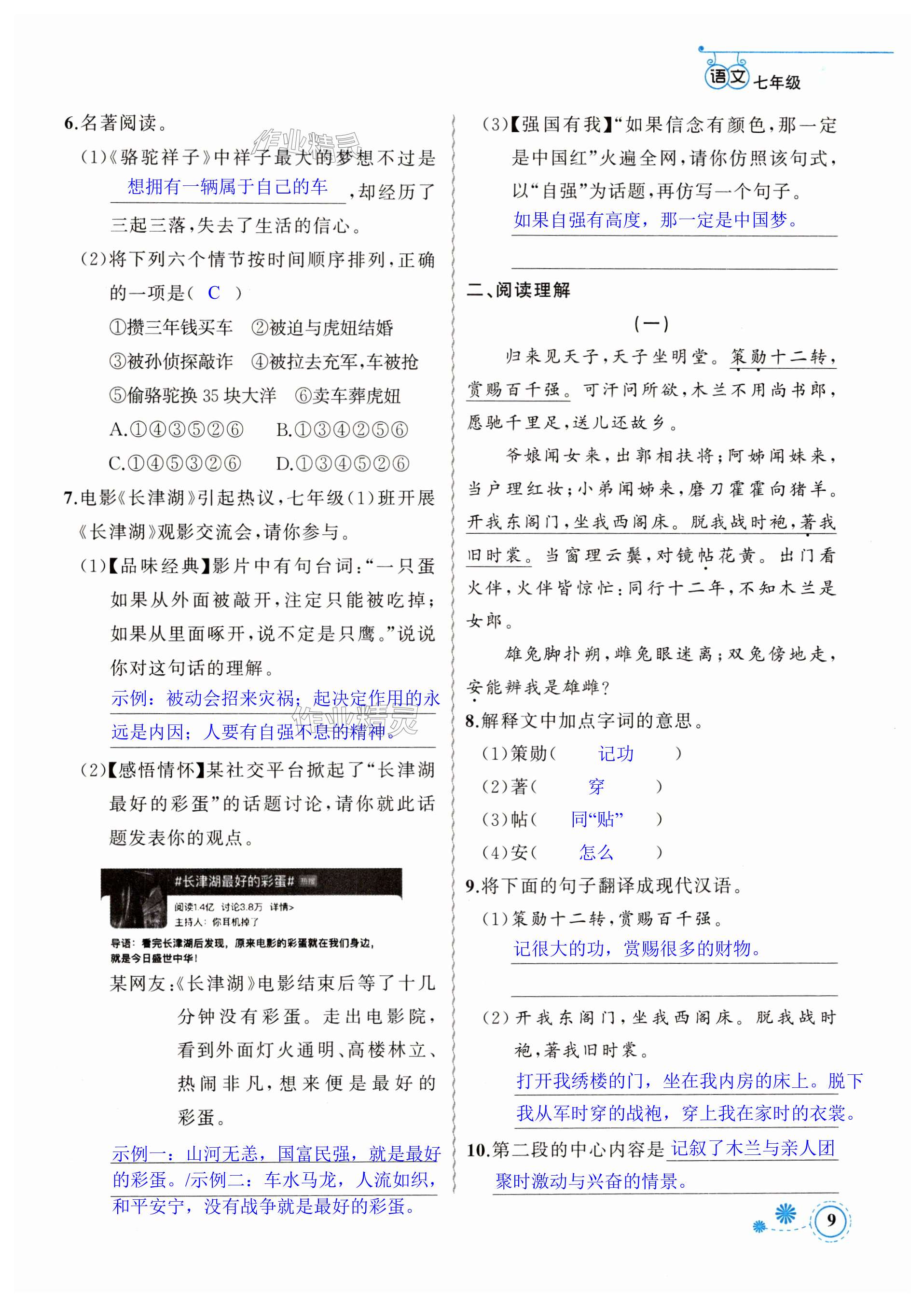 注:目前有些书本章节名称可能整理的还不是很完善,但都是按照顺序排列的,请同学们按照顺序仔细查找。练习册 2024年暑假作业七年级语文新疆青少年出版社 答案主要是用来给同学们做完题方便对答案用的,请勿直接抄袭。