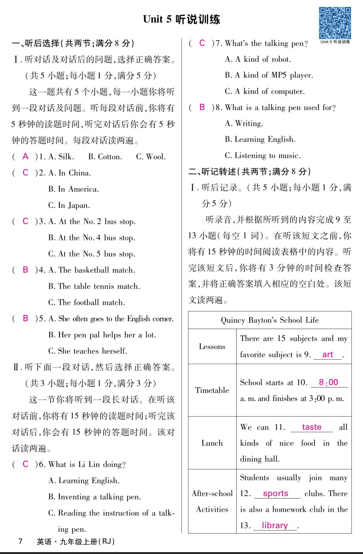 注:目前有些书本章节名称可能整理的还不是很完善,但都是按照顺序排列的,请同学们按照顺序仔细查找。练习册 2024年课堂点睛九年级英语上册人教版宁夏专版 答案主要是用来给同学们做完题方便对答案用的,请勿直接抄袭。