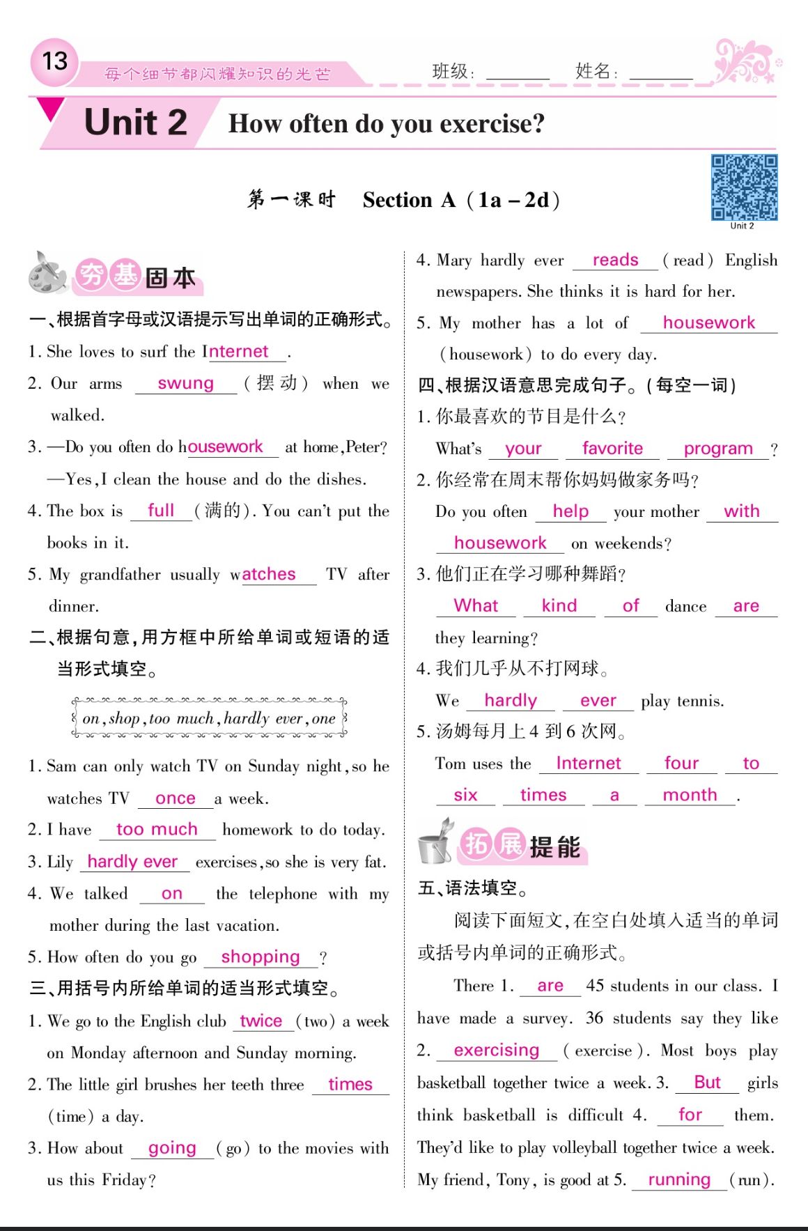 注:目前有些书本章节名称可能整理的还不是很完善,但都是按照顺序排列的,请同学们按照顺序仔细查找。练习册 2024年课堂点睛八年级英语上册人教版宁夏专版 答案主要是用来给同学们做完题方便对答案用的,请勿直接抄袭。