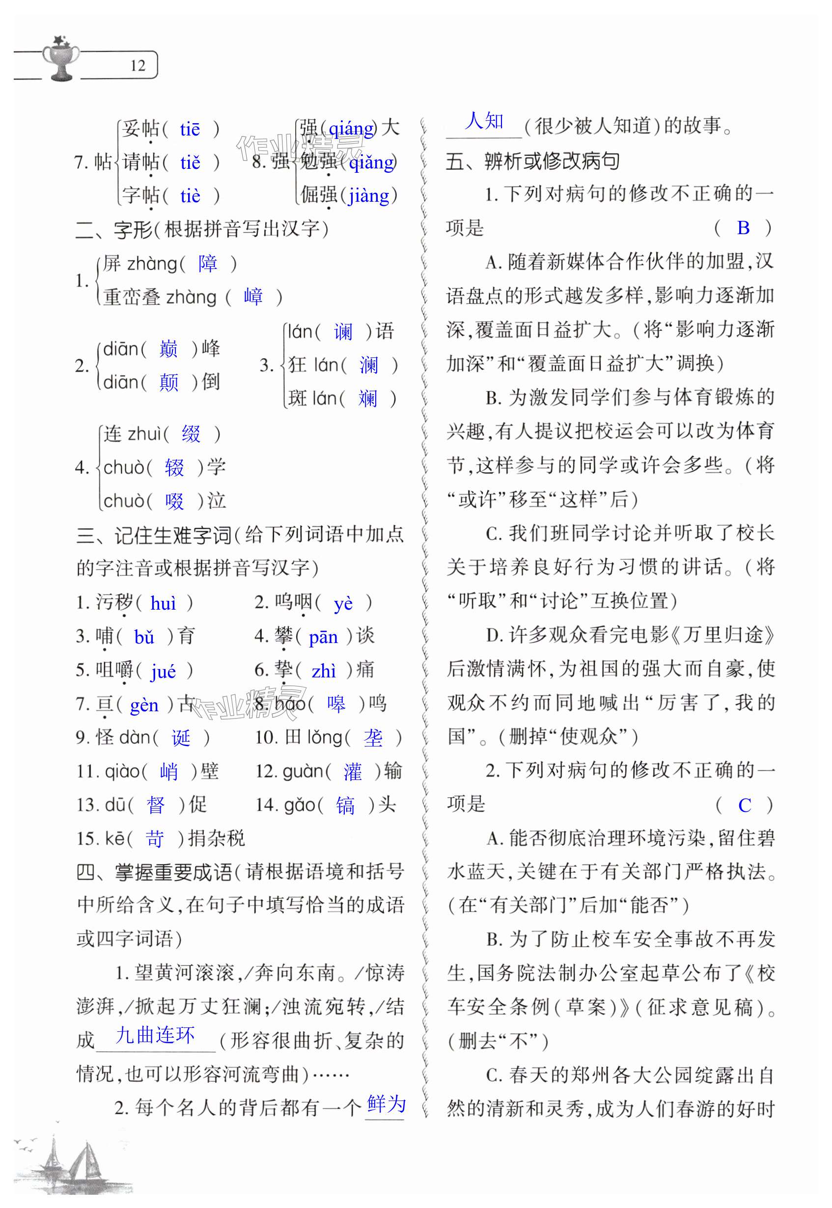 注:目前有些书本章节名称可能整理的还不是很完善,但都是按照顺序排列的,请同学们按照顺序仔细查找。练习册 2024年暑假作业本大象出版社七年级语文人教版 答案主要是用来给同学们做完题方便对答案用的,请勿直接抄袭。