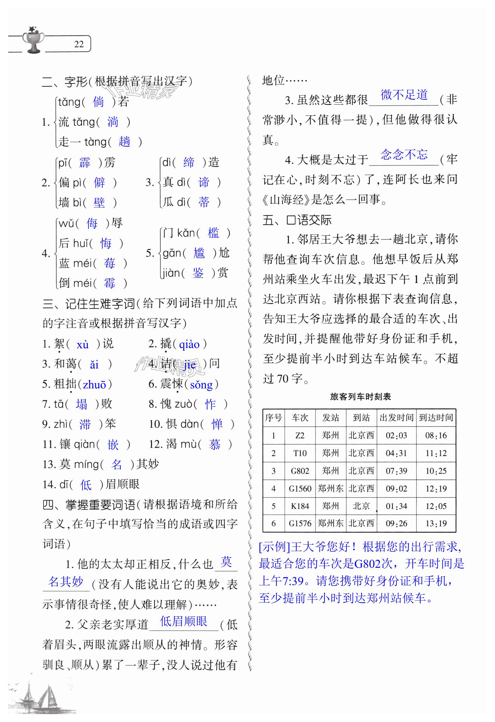 注:目前有些书本章节名称可能整理的还不是很完善,但都是按照顺序排列的,请同学们按照顺序仔细查找。练习册 2024年暑假作业本大象出版社七年级语文人教版 答案主要是用来给同学们做完题方便对答案用的,请勿直接抄袭。