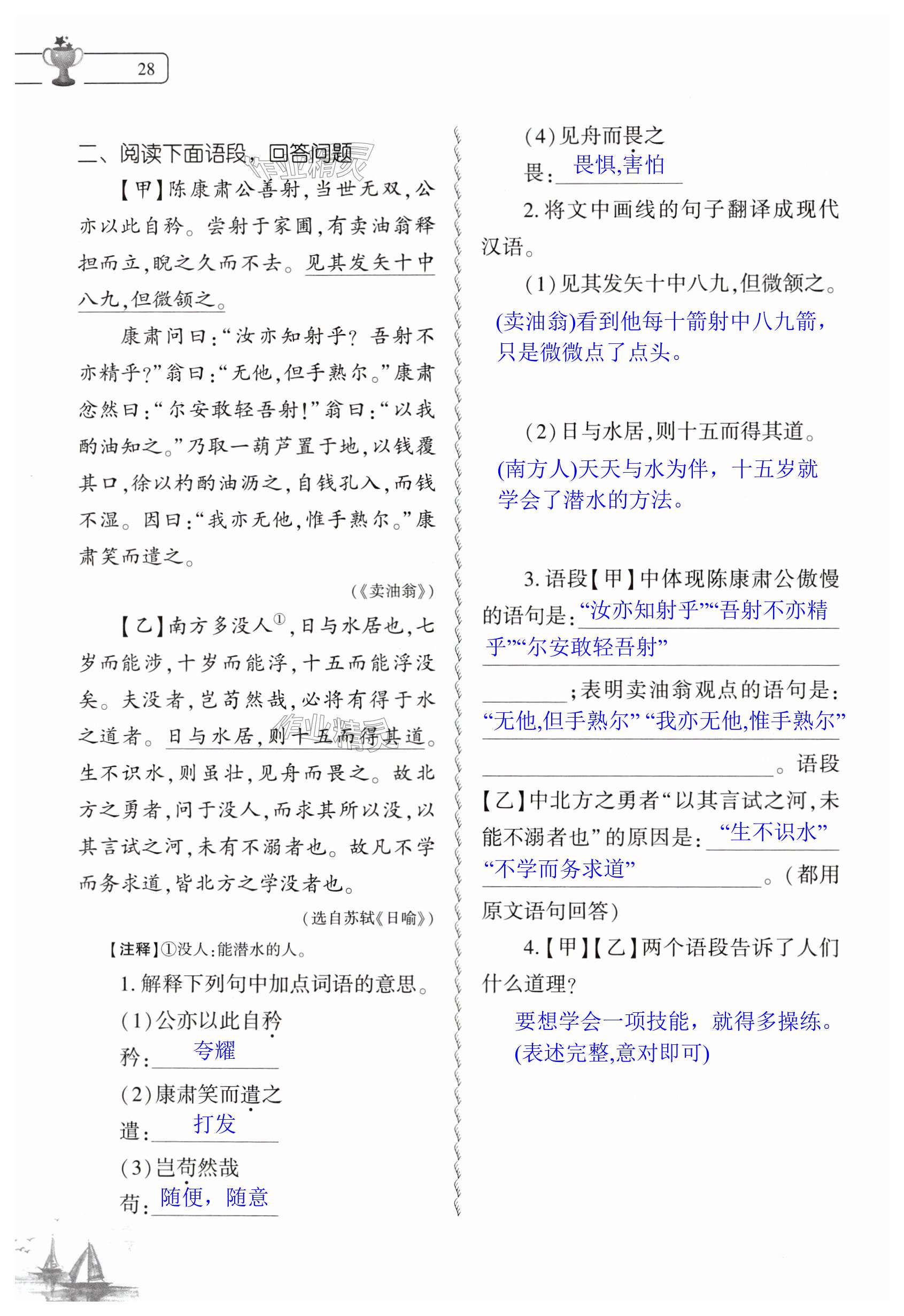 注:目前有些书本章节名称可能整理的还不是很完善,但都是按照顺序排列的,请同学们按照顺序仔细查找。练习册 2024年暑假作业本大象出版社七年级语文人教版 答案主要是用来给同学们做完题方便对答案用的,请勿直接抄袭。