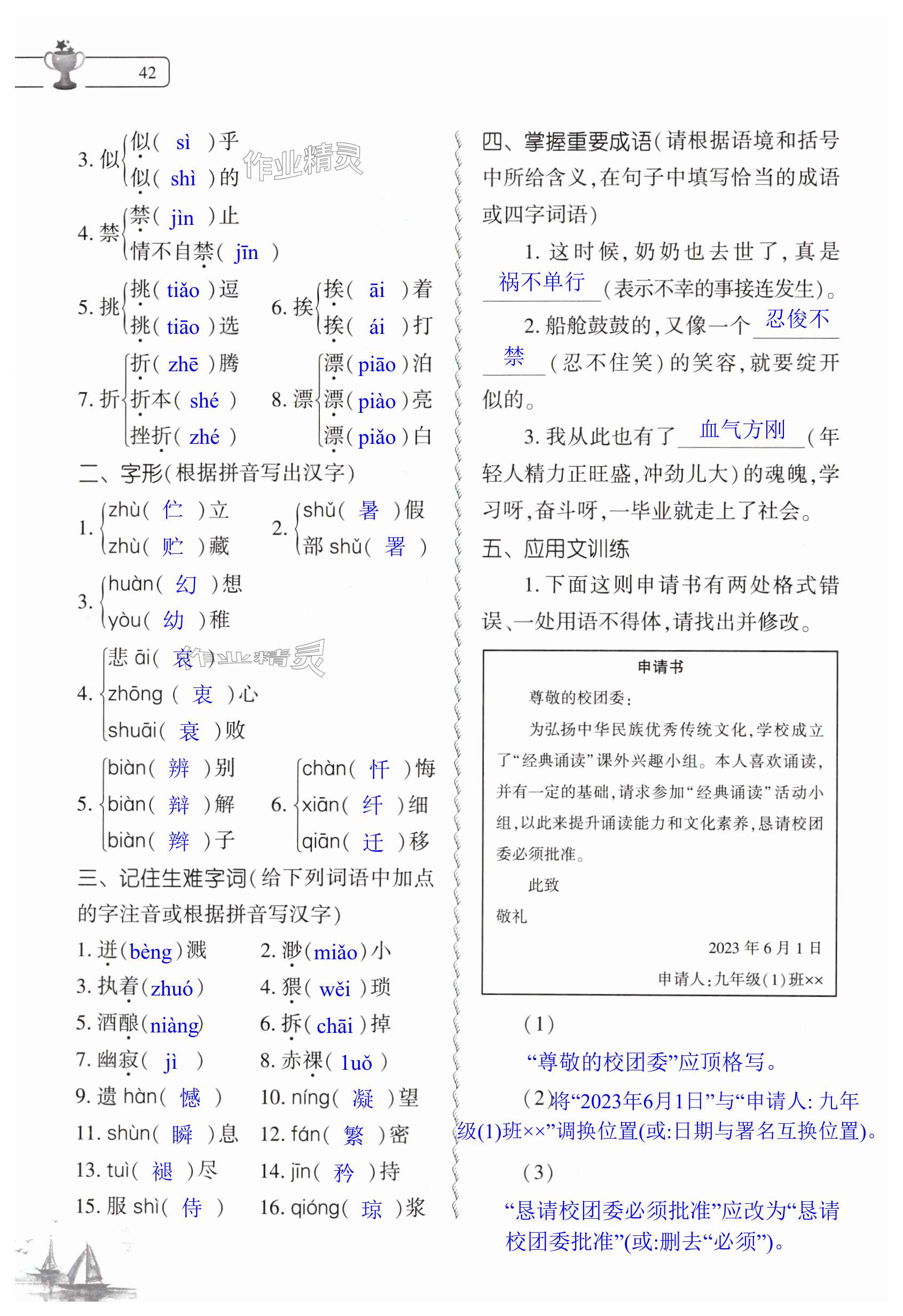 注:目前有些书本章节名称可能整理的还不是很完善,但都是按照顺序排列的,请同学们按照顺序仔细查找。练习册 2024年暑假作业本大象出版社七年级语文人教版 答案主要是用来给同学们做完题方便对答案用的,请勿直接抄袭。