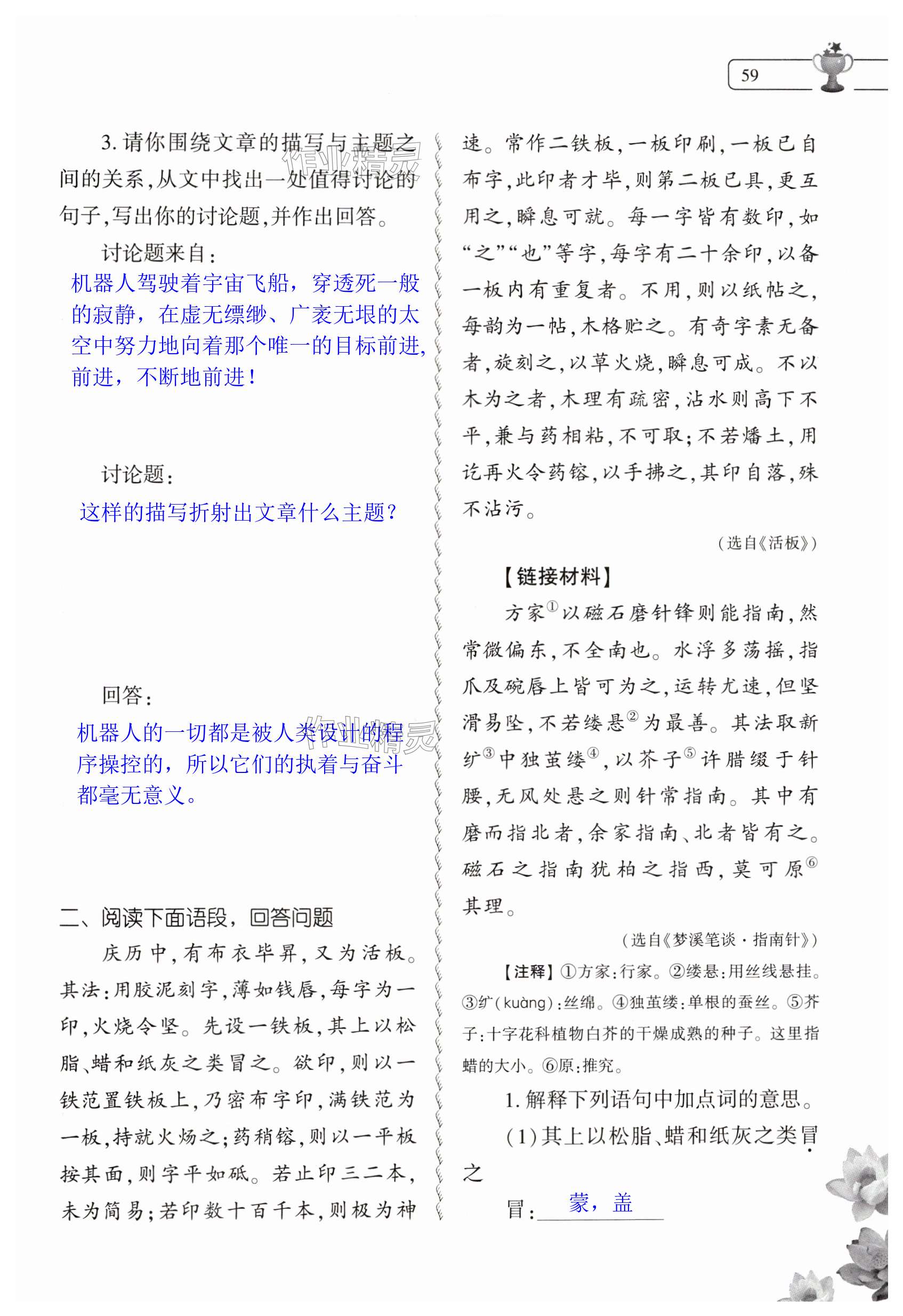 注:目前有些书本章节名称可能整理的还不是很完善,但都是按照顺序排列的,请同学们按照顺序仔细查找。练习册 2024年暑假作业本大象出版社七年级语文人教版 答案主要是用来给同学们做完题方便对答案用的,请勿直接抄袭。