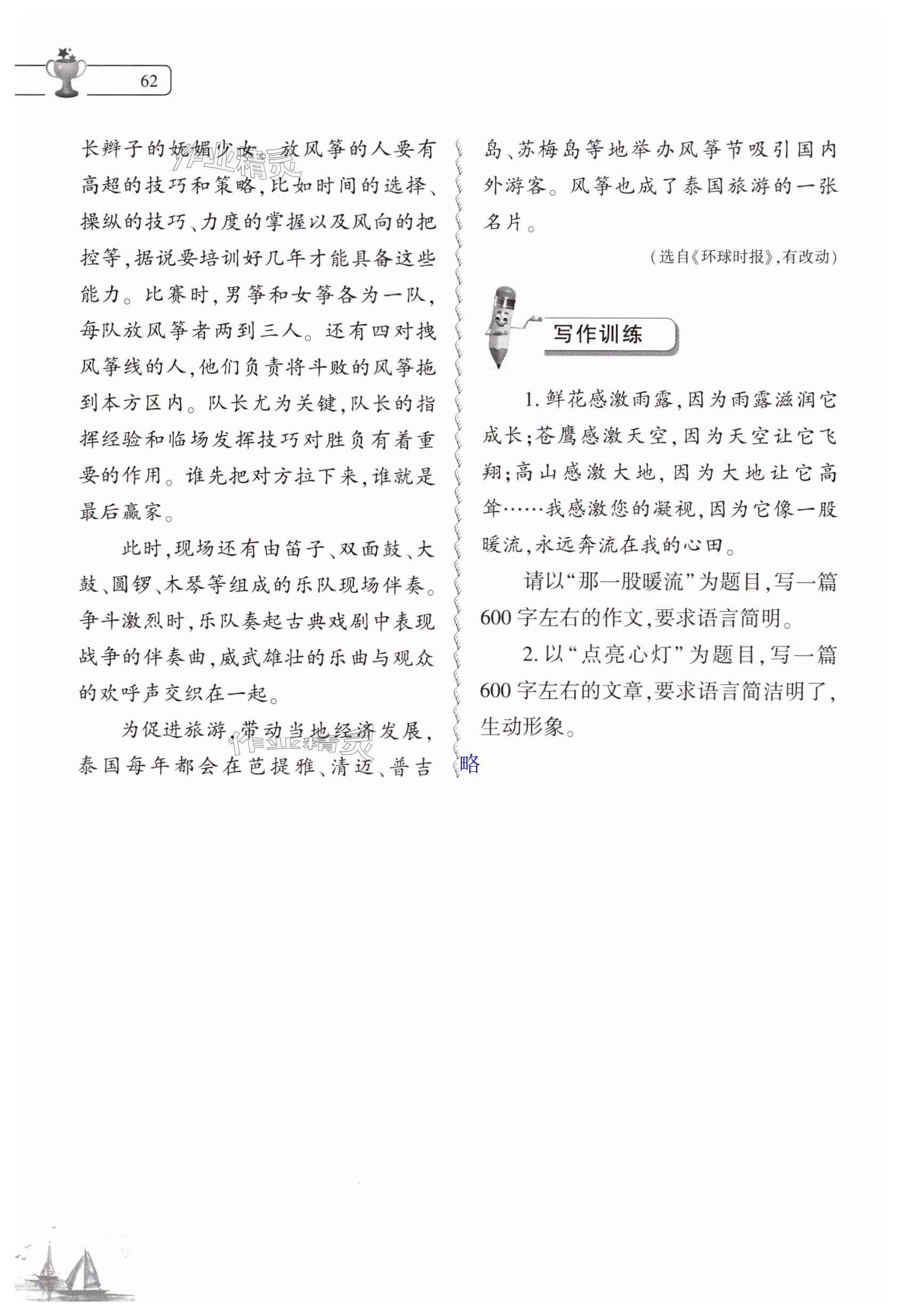 注:目前有些书本章节名称可能整理的还不是很完善,但都是按照顺序排列的,请同学们按照顺序仔细查找。练习册 2024年暑假作业本大象出版社七年级语文人教版 答案主要是用来给同学们做完题方便对答案用的,请勿直接抄袭。