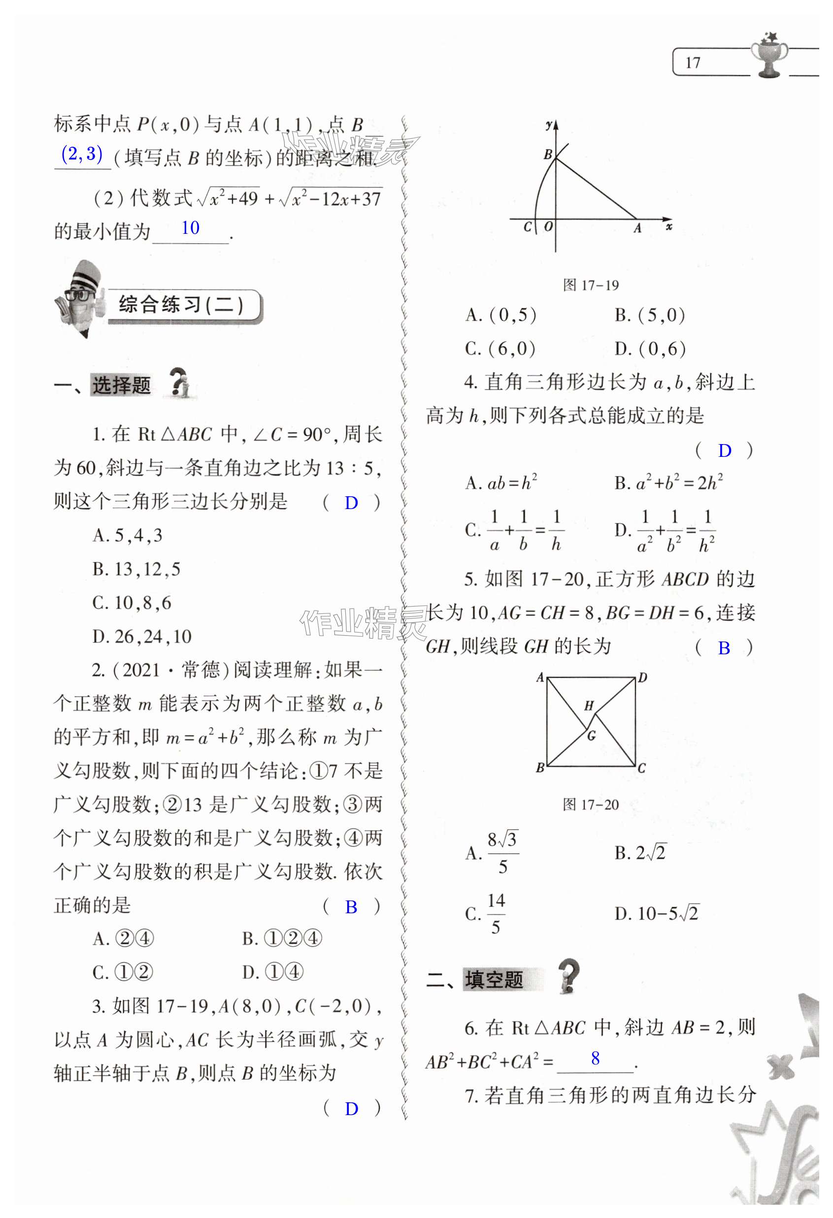 注:目前有些书本章节名称可能整理的还不是很完善,但都是按照顺序排列的,请同学们按照顺序仔细查找。练习册 2024年暑假作业本大象出版社八年级数学人教版 答案主要是用来给同学们做完题方便对答案用的,请勿直接抄袭。