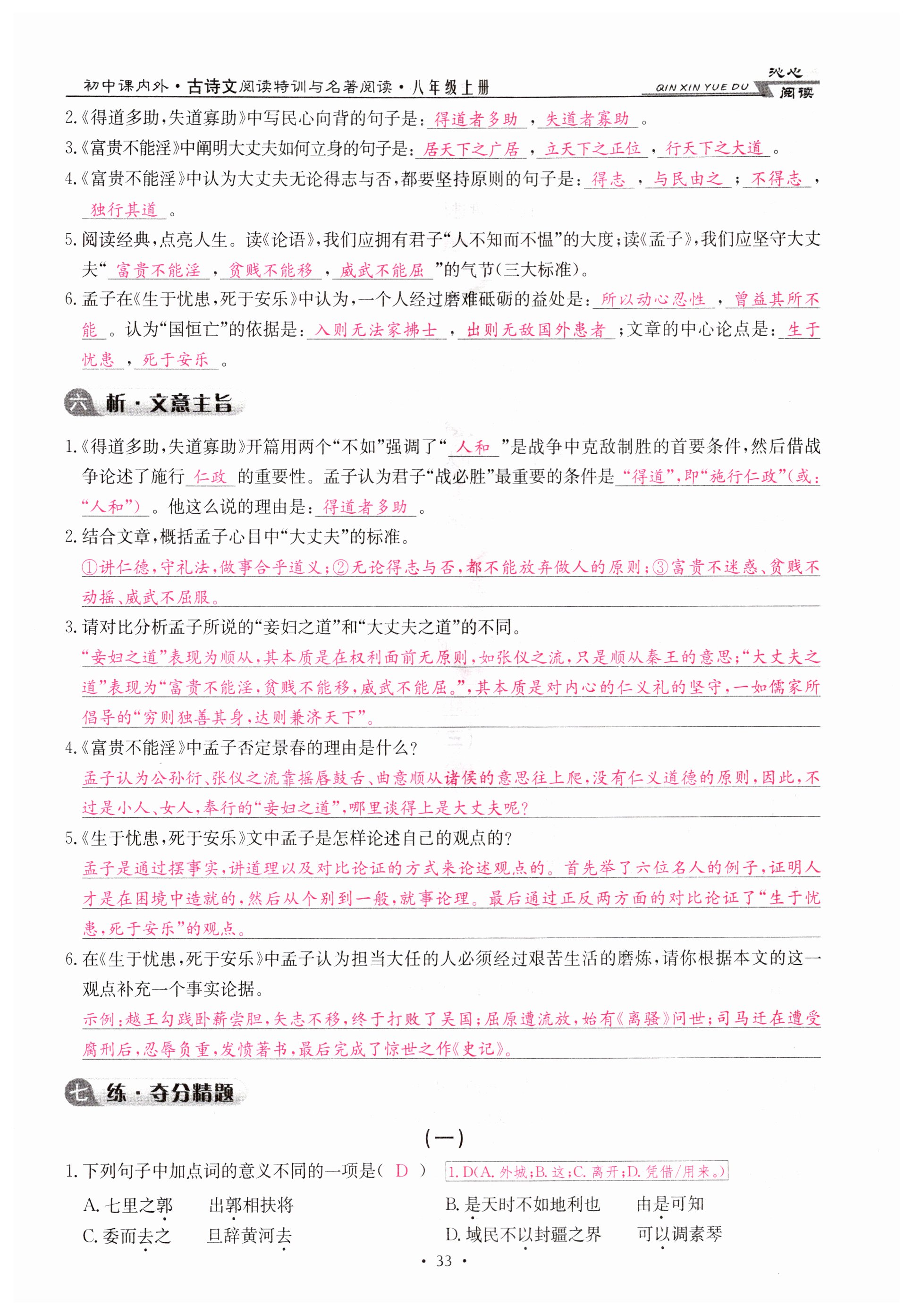 注:目前有些书本章节名称可能整理的还不是很完善,但都是按照顺序排列的,请同学们按照顺序仔细查找。练习册 2024年初中课内外古诗文阅读特训加名著阅读八年级上册人教版 答案主要是用来给同学们做完题方便对答案用的,请勿直接抄袭。