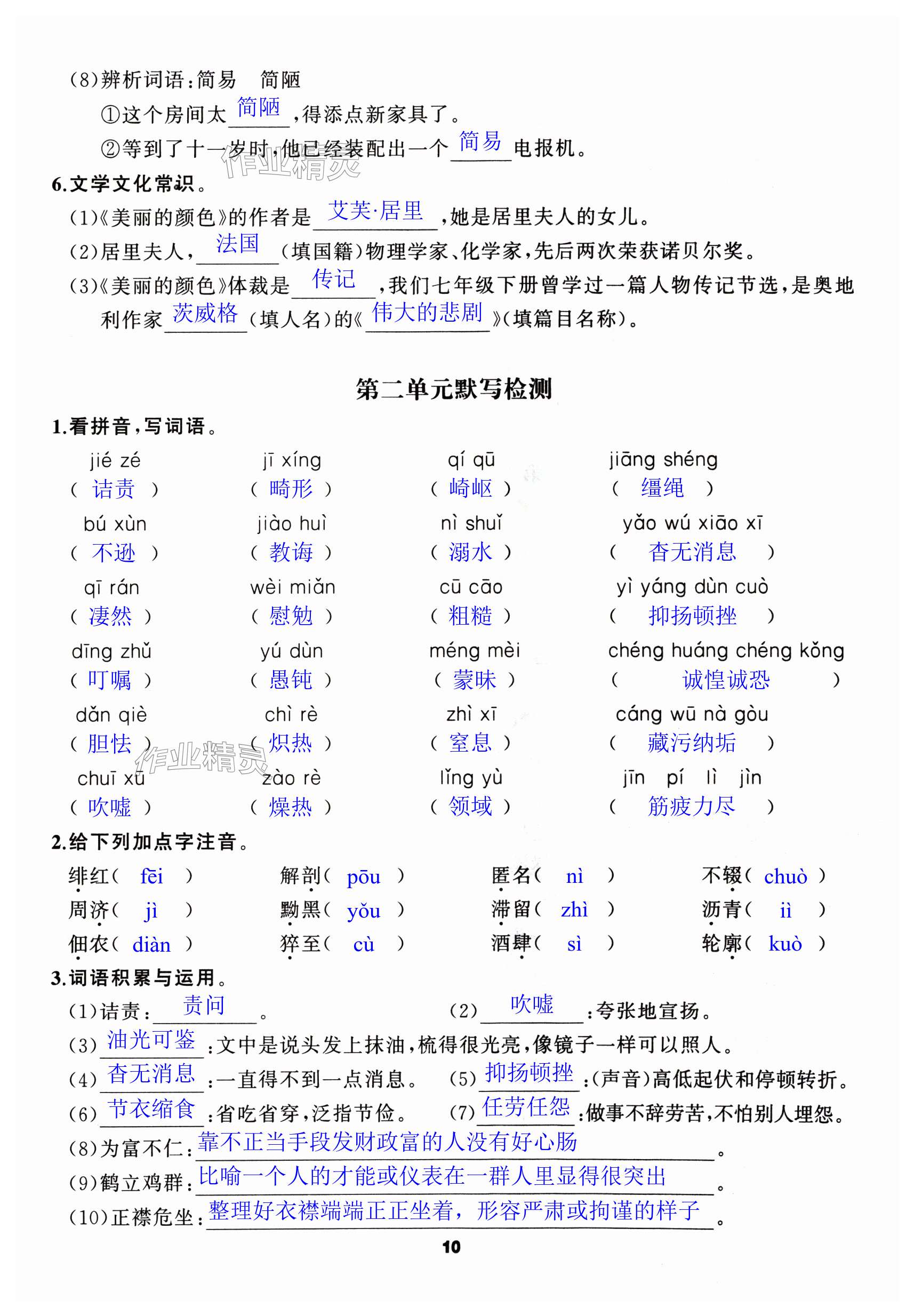 注:目前有些书本章节名称可能整理的还不是很完善,但都是按照顺序排列的,请同学们按照顺序仔细查找。练习册 2024年语文花开天津科学技术出版社八年级语文上册人教版 答案主要是用来给同学们做完题方便对答案用的,请勿直接抄袭。