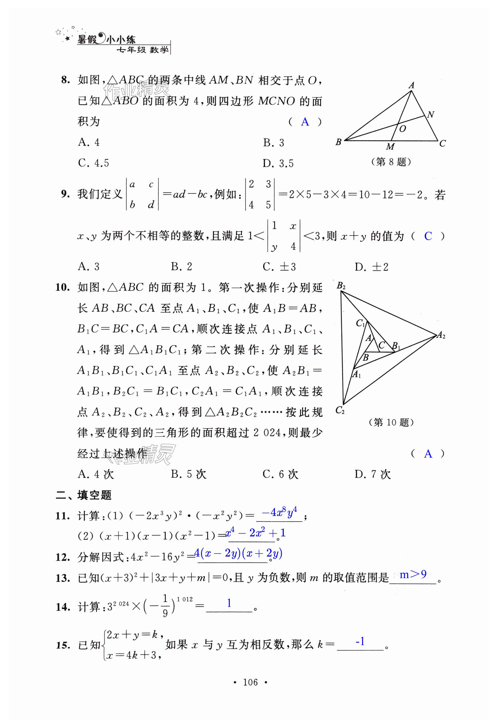 注:目前有些书本章节名称可能整理的还不是很完善,但都是按照顺序排列的,请同学们按照顺序仔细查找。练习册 2024年暑假小小练七年级语文数学英语合订本 答案主要是用来给同学们做完题方便对答案用的,请勿直接抄袭。