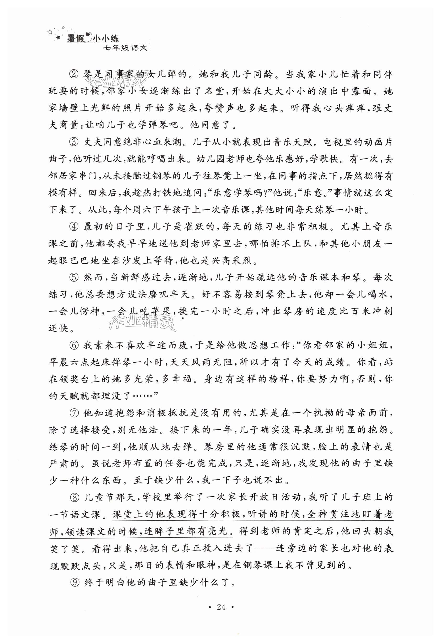 注:目前有些书本章节名称可能整理的还不是很完善,但都是按照顺序排列的,请同学们按照顺序仔细查找。练习册 2024年暑假小小练七年级语文数学英语合订本 答案主要是用来给同学们做完题方便对答案用的,请勿直接抄袭。