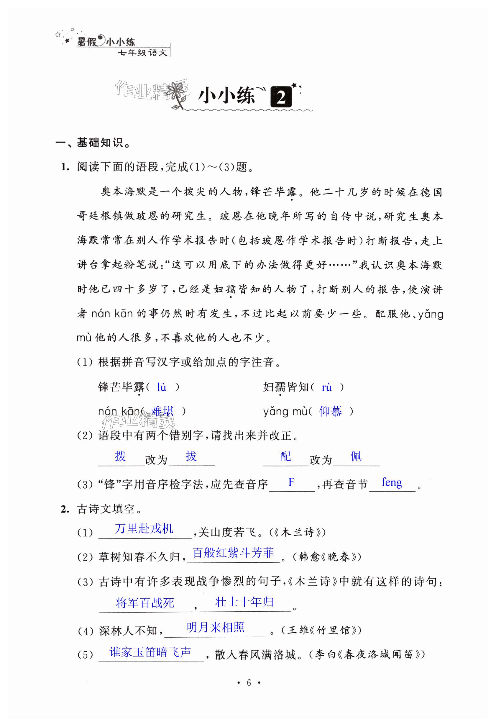 注:目前有些书本章节名称可能整理的还不是很完善,但都是按照顺序排列的,请同学们按照顺序仔细查找。练习册 2024年暑假小小练七年级语文数学英语合订本 答案主要是用来给同学们做完题方便对答案用的,请勿直接抄袭。
