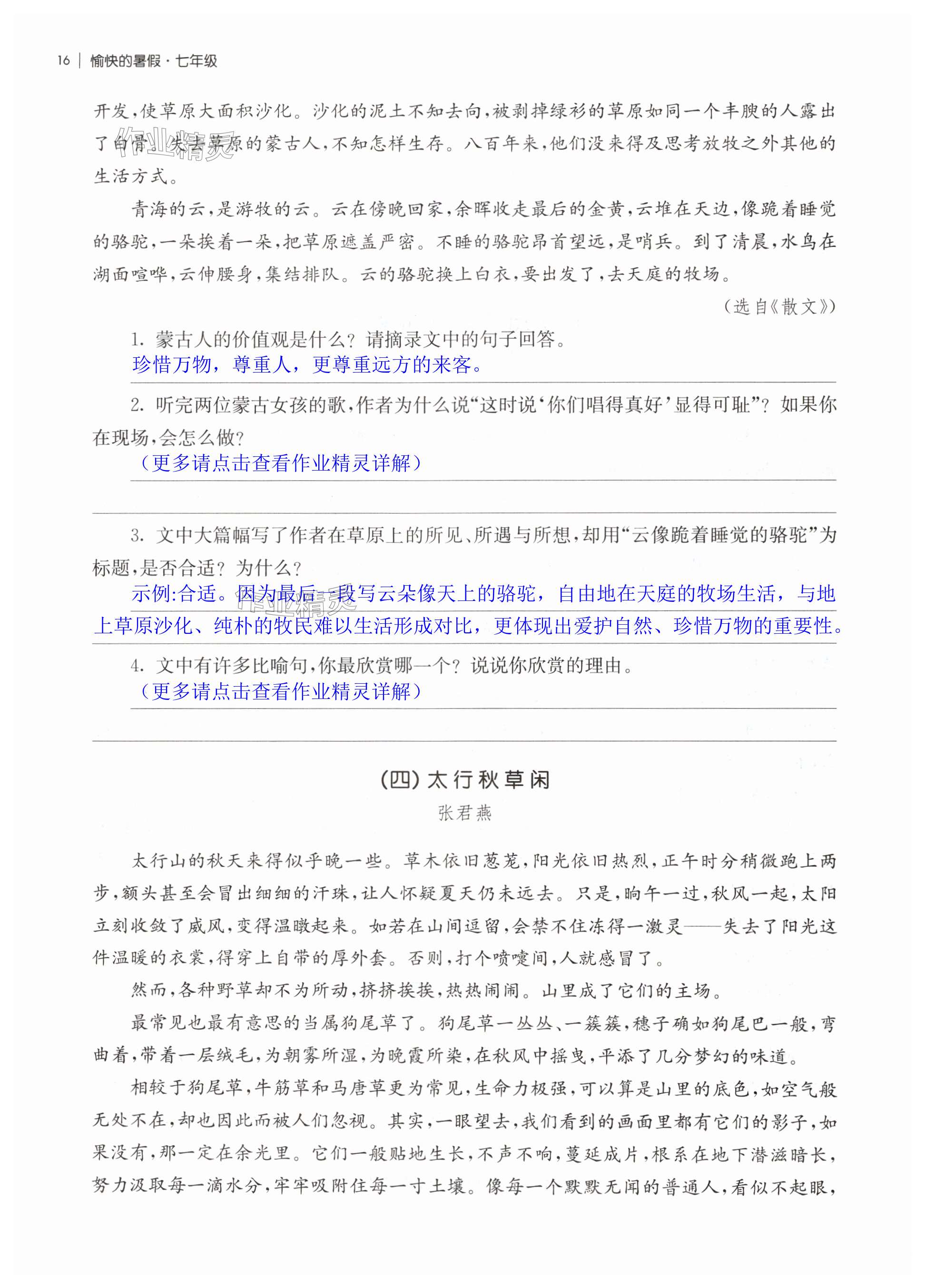 注:目前有些书本章节名称可能整理的还不是很完善,但都是按照顺序排列的,请同学们按照顺序仔细查找。练习册 2024年愉快的暑假南京出版社七年级 答案主要是用来给同学们做完题方便对答案用的,请勿直接抄袭。