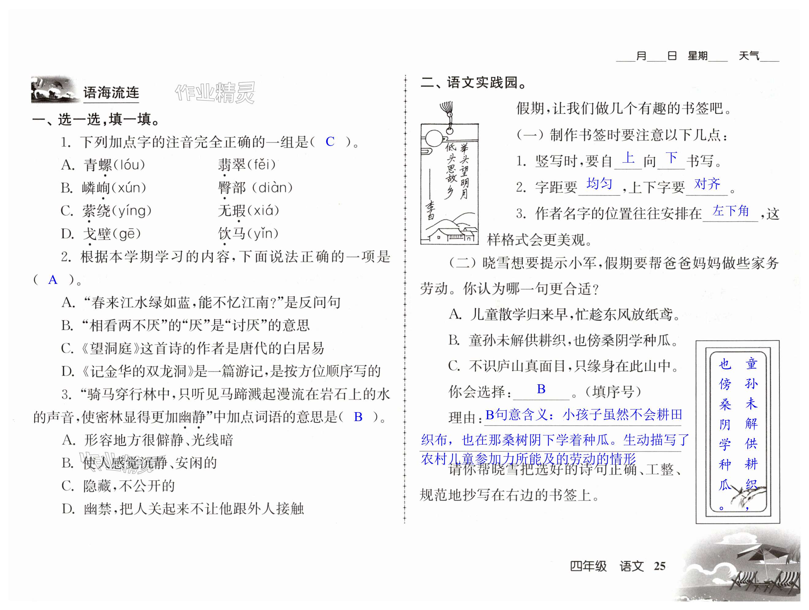 注:目前有些书本章节名称可能整理的还不是很完善,但都是按照顺序排列的,请同学们按照顺序仔细查找。练习册 2024年愉快的暑假四年级 答案主要是用来给同学们做完题方便对答案用的,请勿直接抄袭。