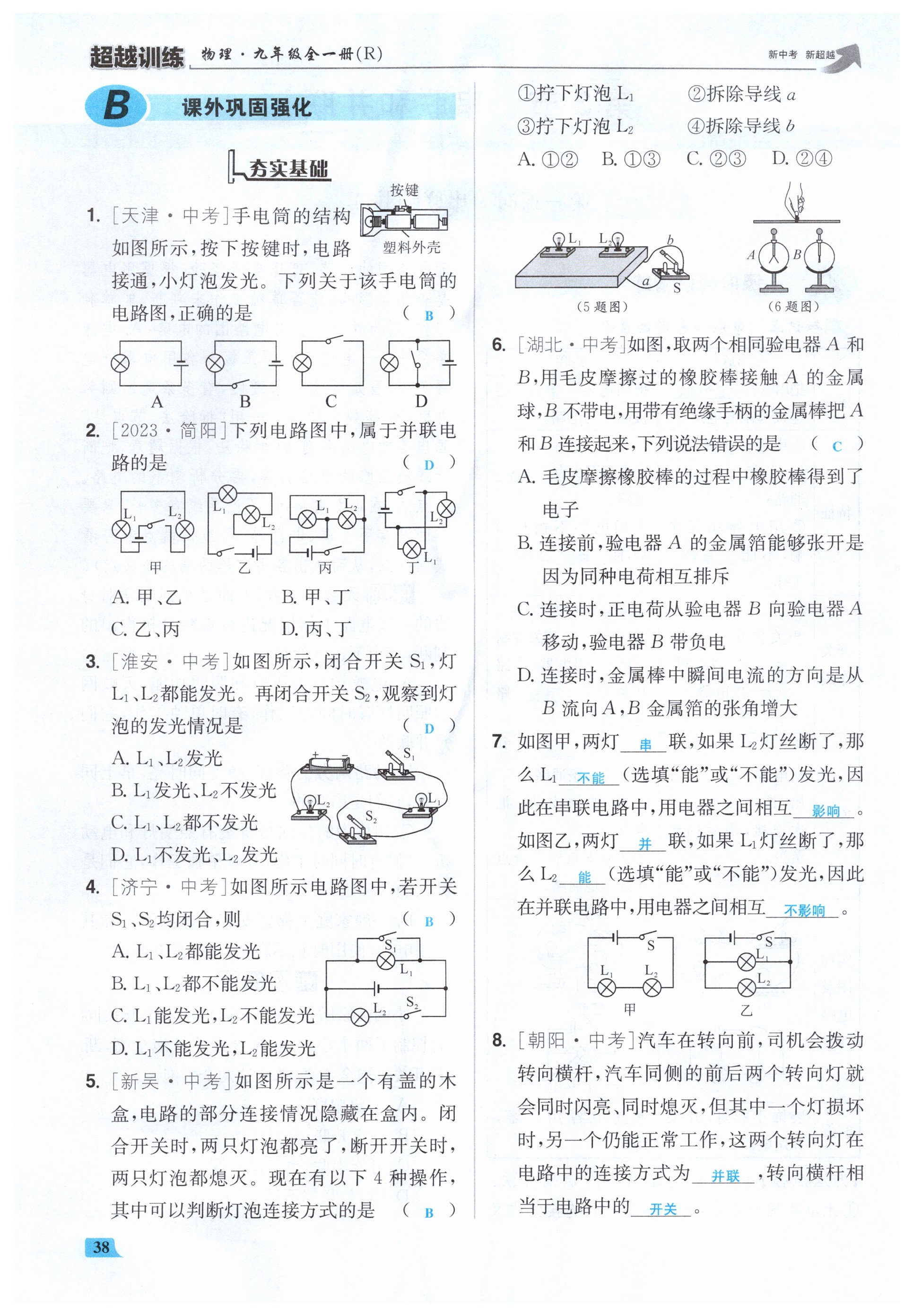 注:目前有些书本章节名称可能整理的还不是很完善,但都是按照顺序排列的,请同学们按照顺序仔细查找。练习册 2024年超越训练九年级物理全一册人教版 答案主要是用来给同学们做完题方便对答案用的,请勿直接抄袭。