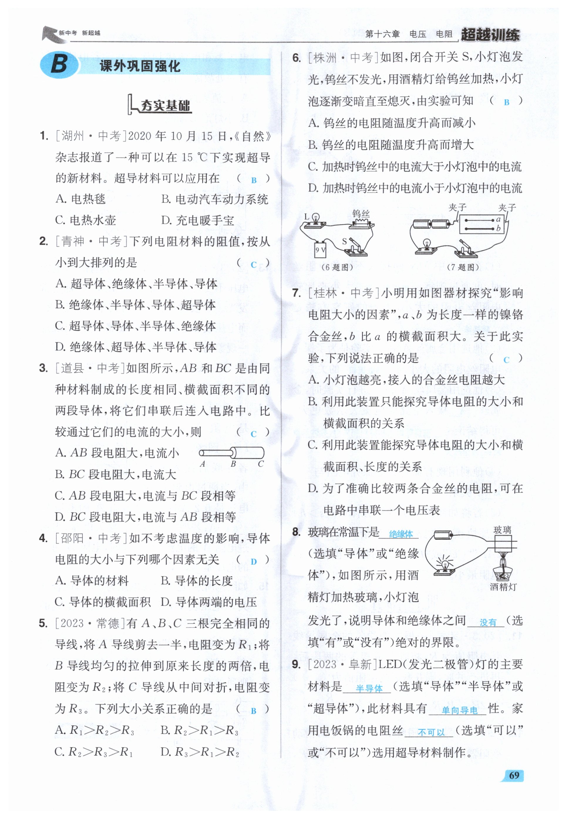 注:目前有些书本章节名称可能整理的还不是很完善,但都是按照顺序排列的,请同学们按照顺序仔细查找。练习册 2024年超越训练九年级物理全一册人教版 答案主要是用来给同学们做完题方便对答案用的,请勿直接抄袭。