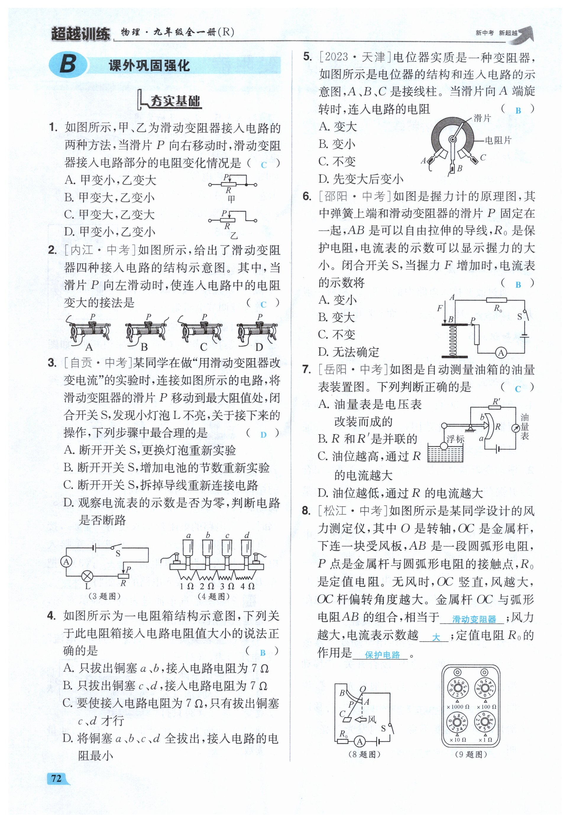 注:目前有些书本章节名称可能整理的还不是很完善,但都是按照顺序排列的,请同学们按照顺序仔细查找。练习册 2024年超越训练九年级物理全一册人教版 答案主要是用来给同学们做完题方便对答案用的,请勿直接抄袭。