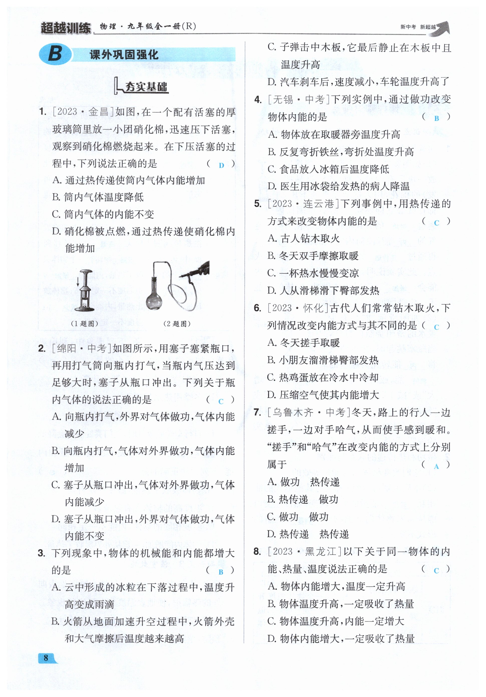 注:目前有些书本章节名称可能整理的还不是很完善,但都是按照顺序排列的,请同学们按照顺序仔细查找。练习册 2024年超越训练九年级物理全一册人教版 答案主要是用来给同学们做完题方便对答案用的,请勿直接抄袭。