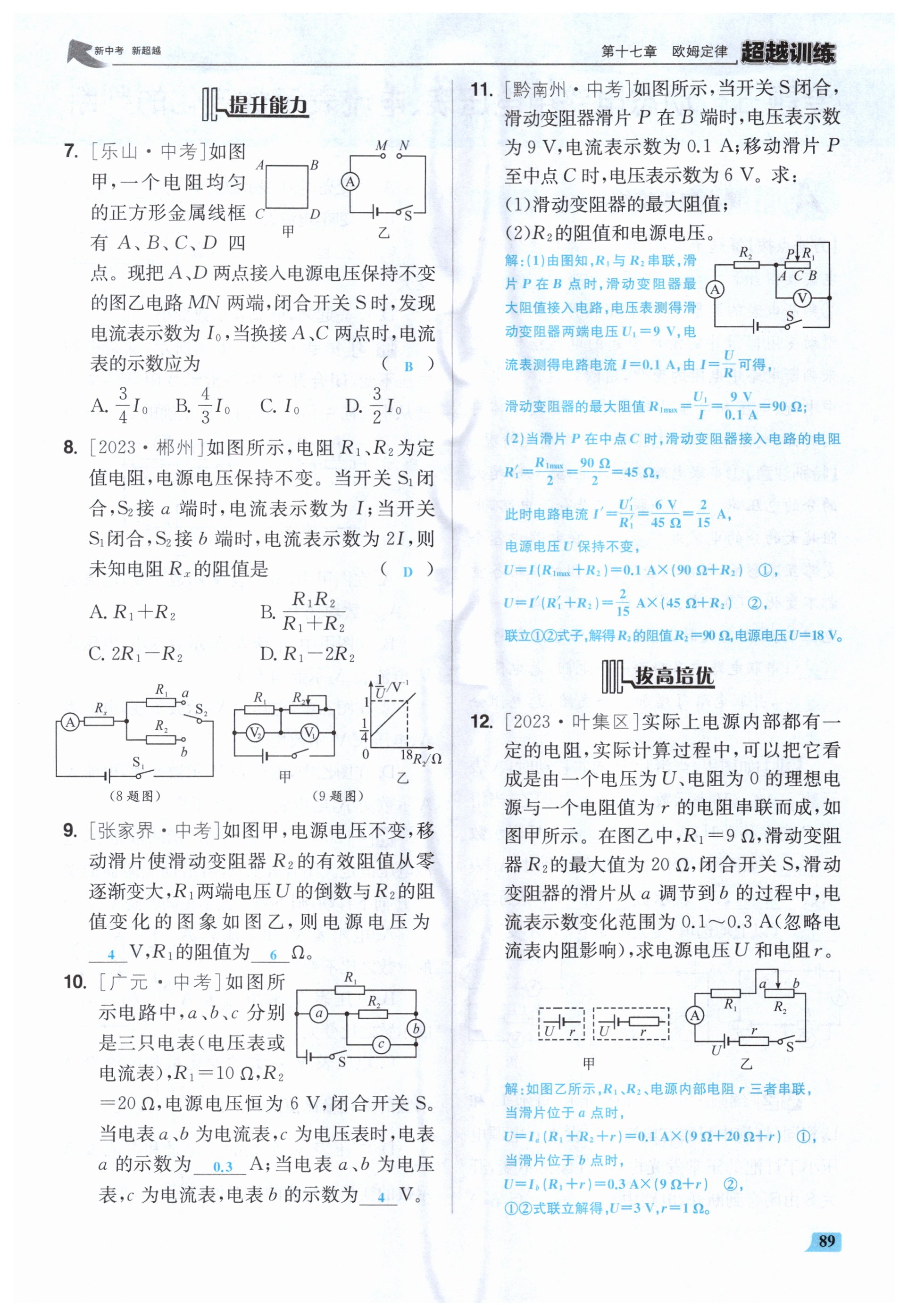 注:目前有些书本章节名称可能整理的还不是很完善,但都是按照顺序排列的,请同学们按照顺序仔细查找。练习册 2024年超越训练九年级物理全一册人教版 答案主要是用来给同学们做完题方便对答案用的,请勿直接抄袭。