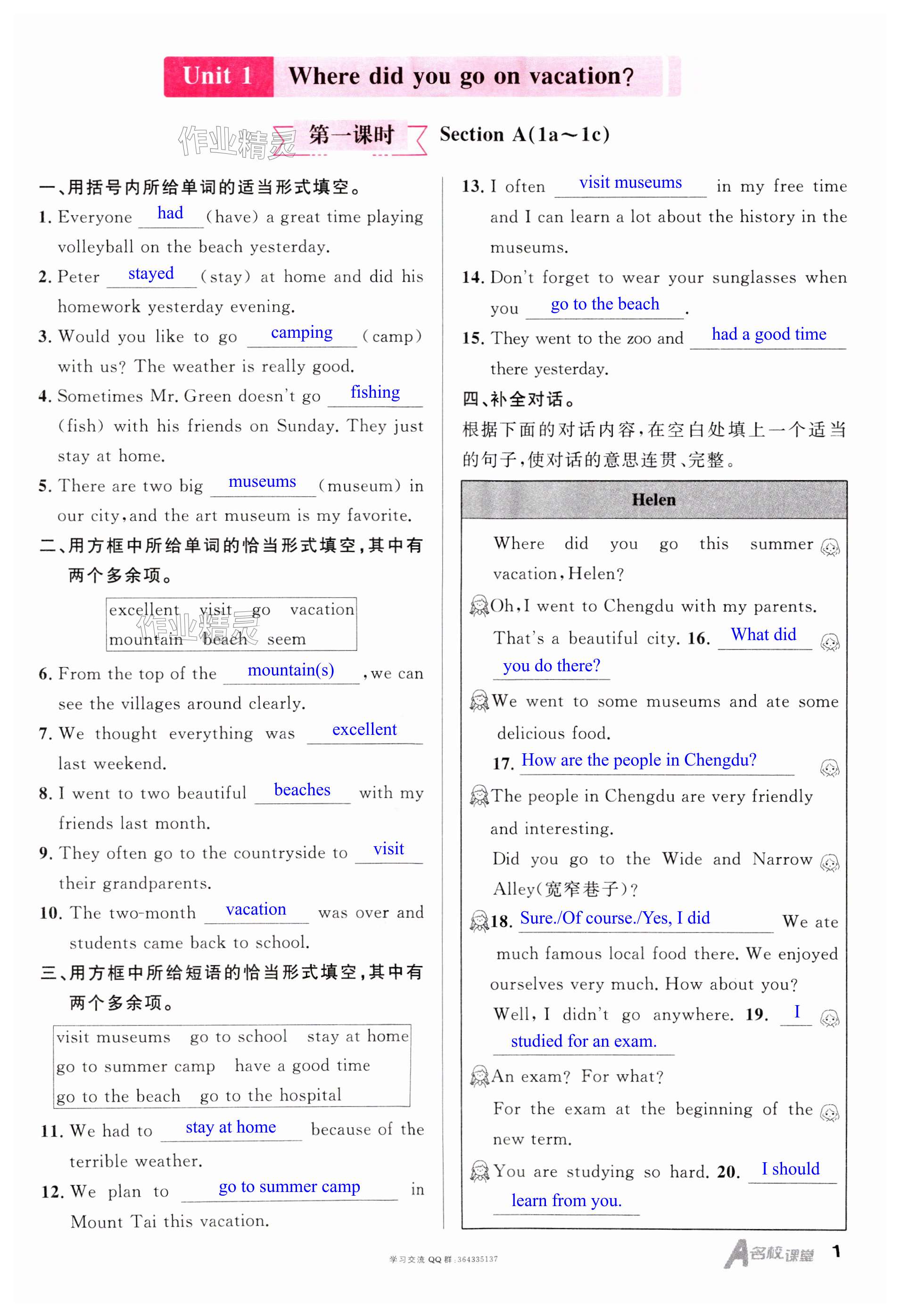 注:目前有些书本章节名称可能整理的还不是很完善,但都是按照顺序排列的,请同学们按照顺序仔细查找。练习册 2024年名校课堂八年级英语上册人教版山西专版 答案主要是用来给同学们做完题方便对答案用的,请勿直接抄袭。