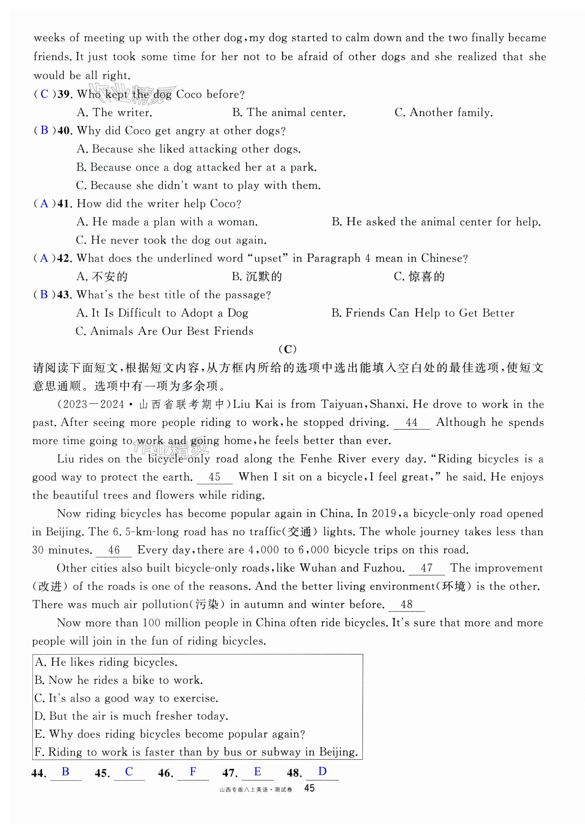 注:目前有些书本章节名称可能整理的还不是很完善,但都是按照顺序排列的,请同学们按照顺序仔细查找。练习册 2024年名校课堂八年级英语上册人教版山西专版 答案主要是用来给同学们做完题方便对答案用的,请勿直接抄袭。