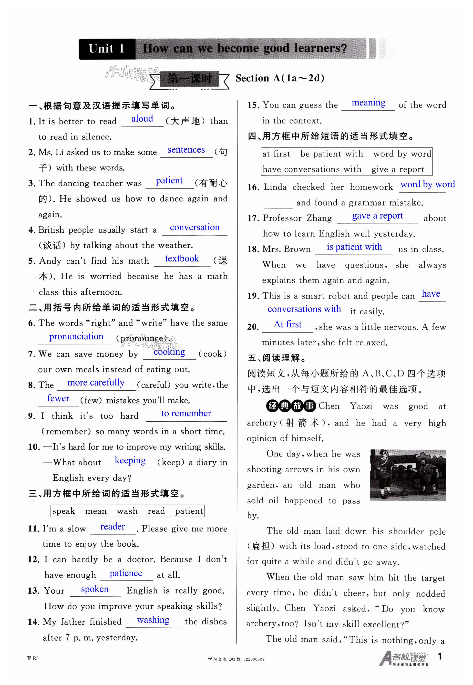 注:目前有些书本章节名称可能整理的还不是很完善,但都是按照顺序排列的,请同学们按照顺序仔细查找。练习册 2024年名校课堂九年级英语上册人教版湖北专版 答案主要是用来给同学们做完题方便对答案用的,请勿直接抄袭。